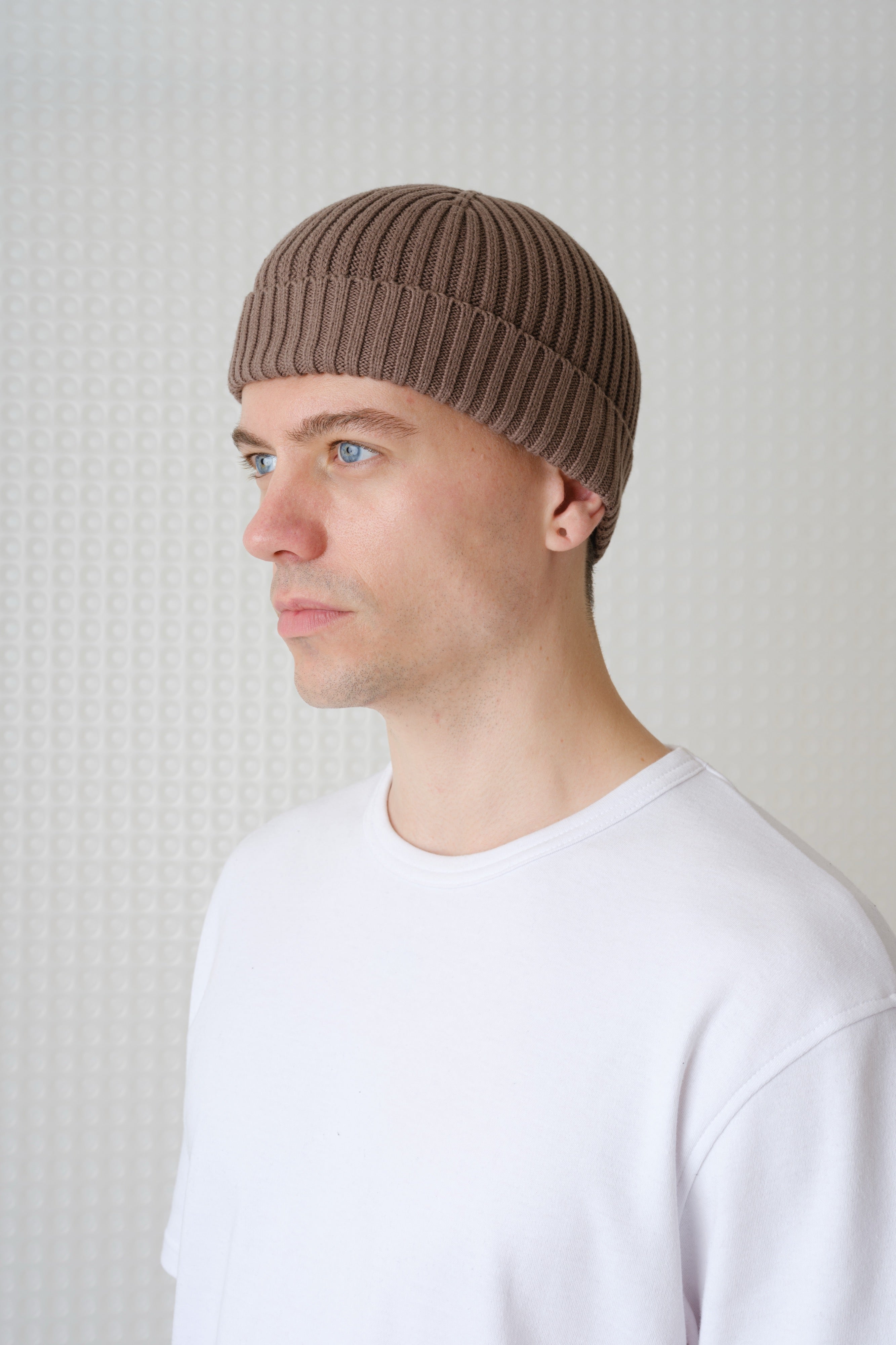 The Brye Beanie Hat Mushroom is a soft ribbed knit beanie with a close, comfortable fit. Minimal and warm.
