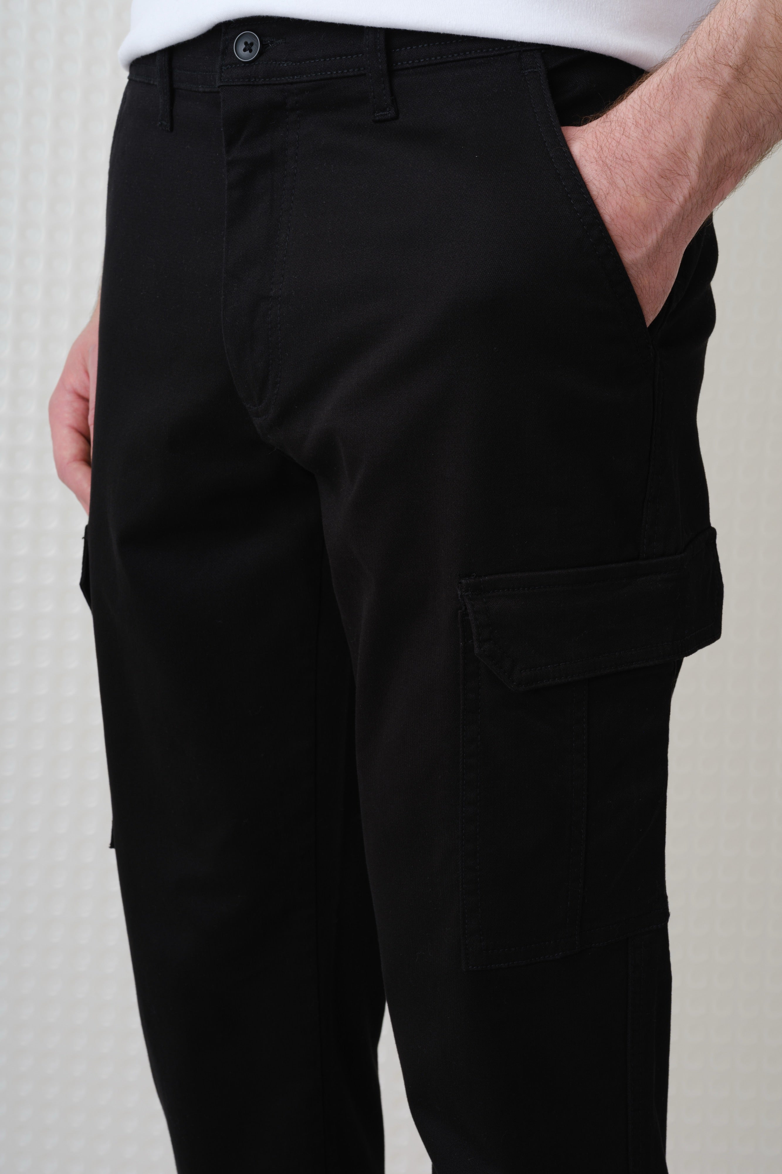 Slim-fit tapered cargo pant with elasticated waistband and internal drawcords.   100% Cotton