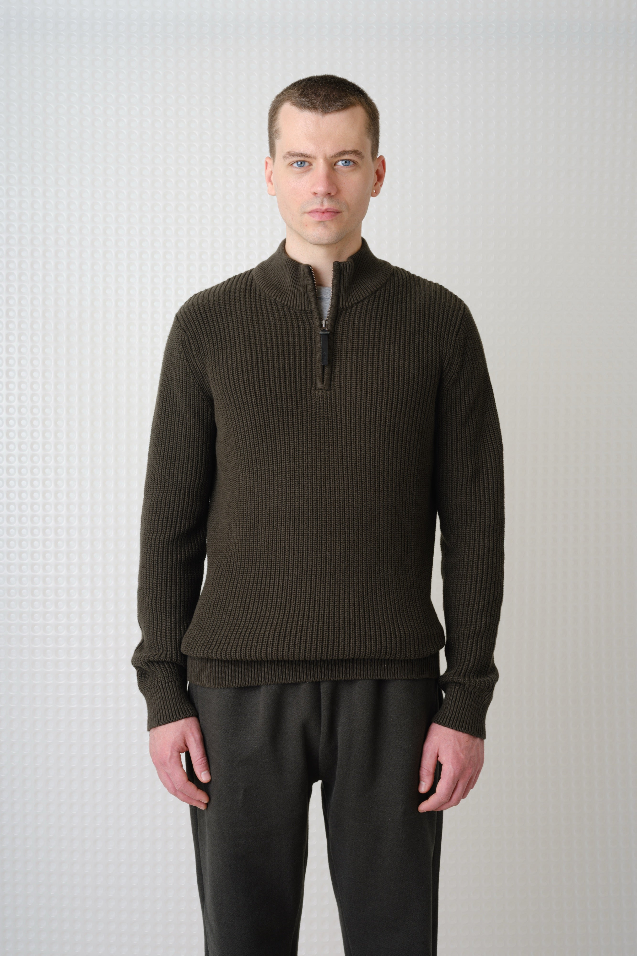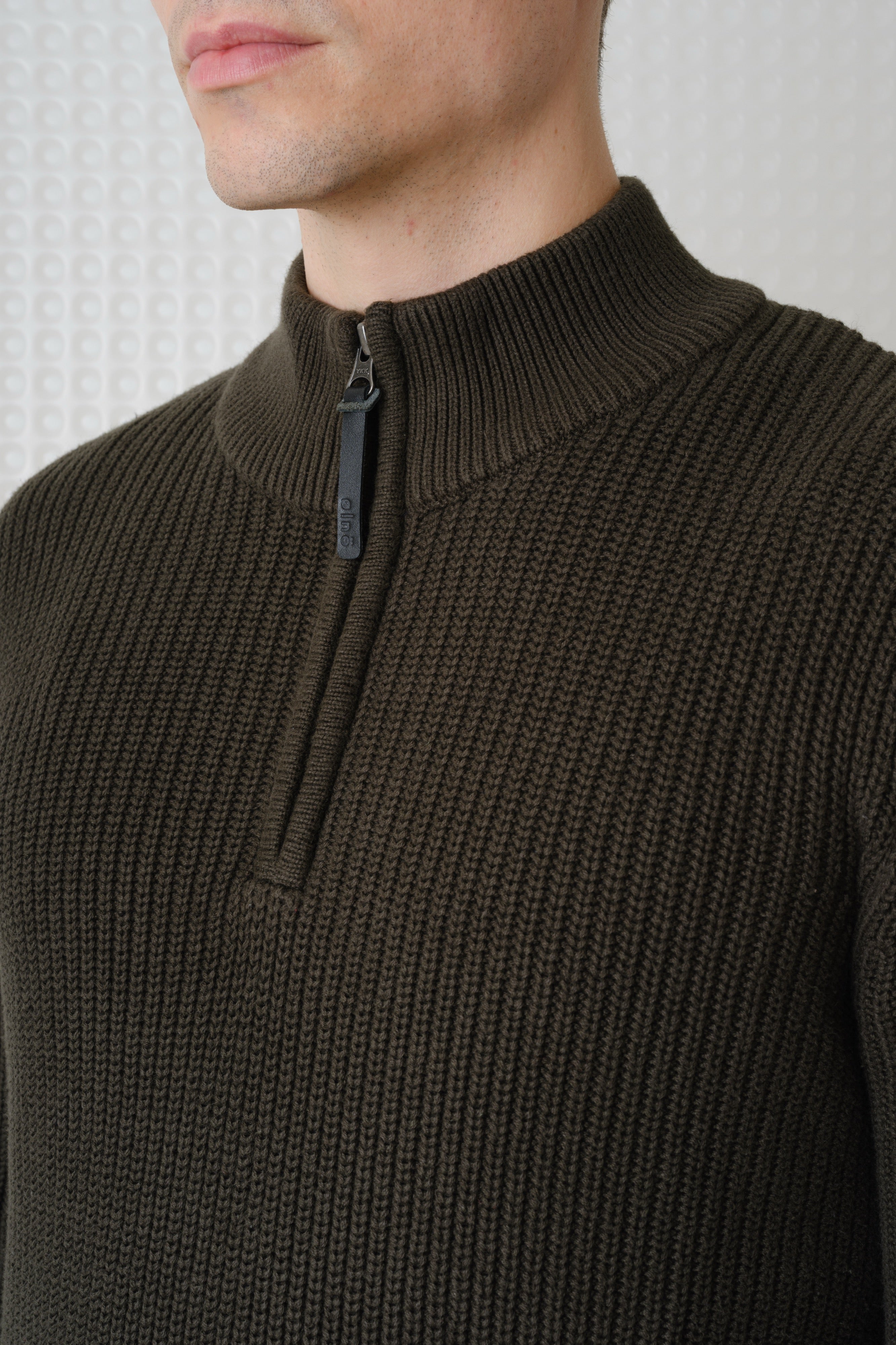 Herning - Quarter Zip Knit - Dark Olive