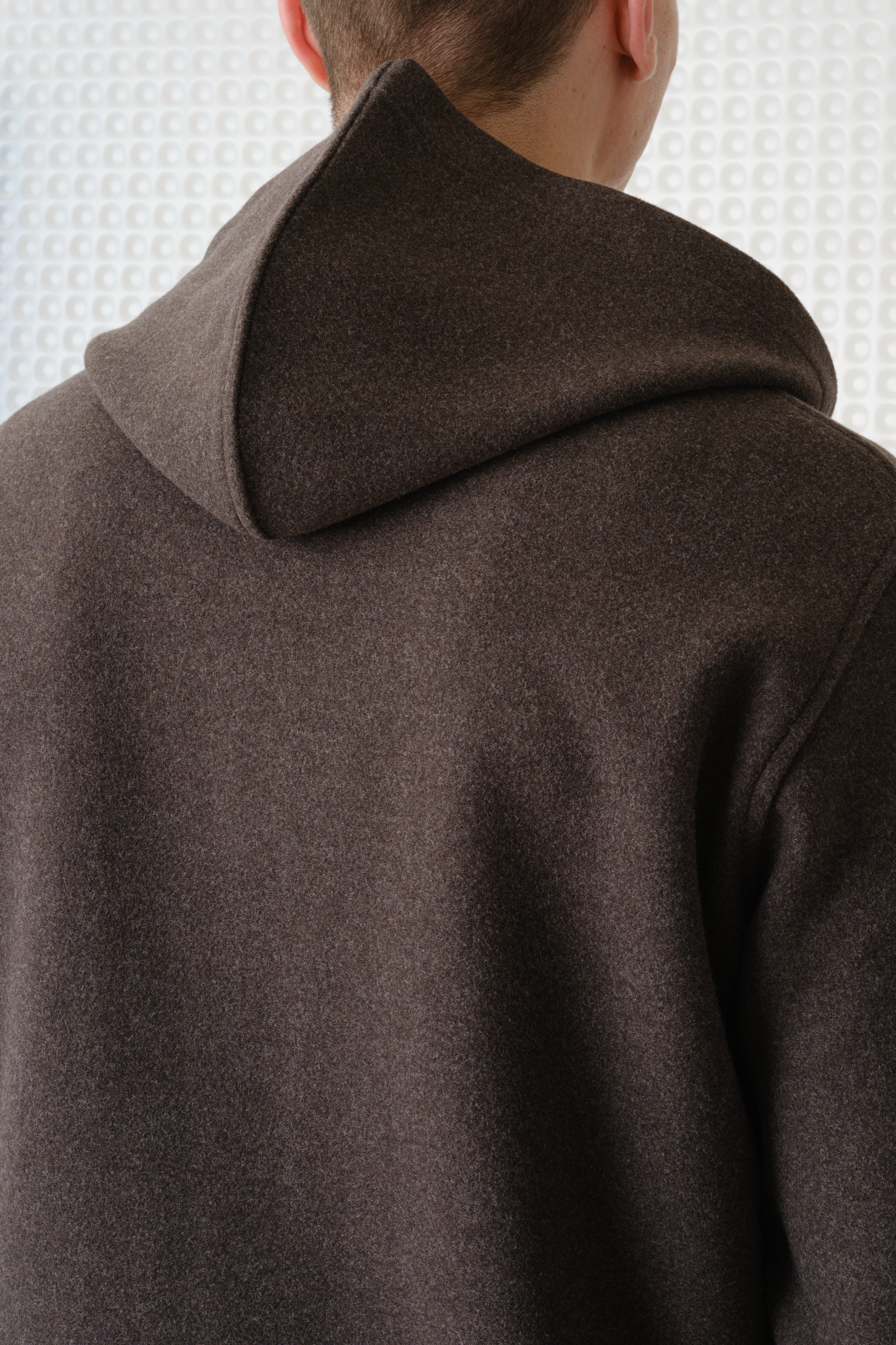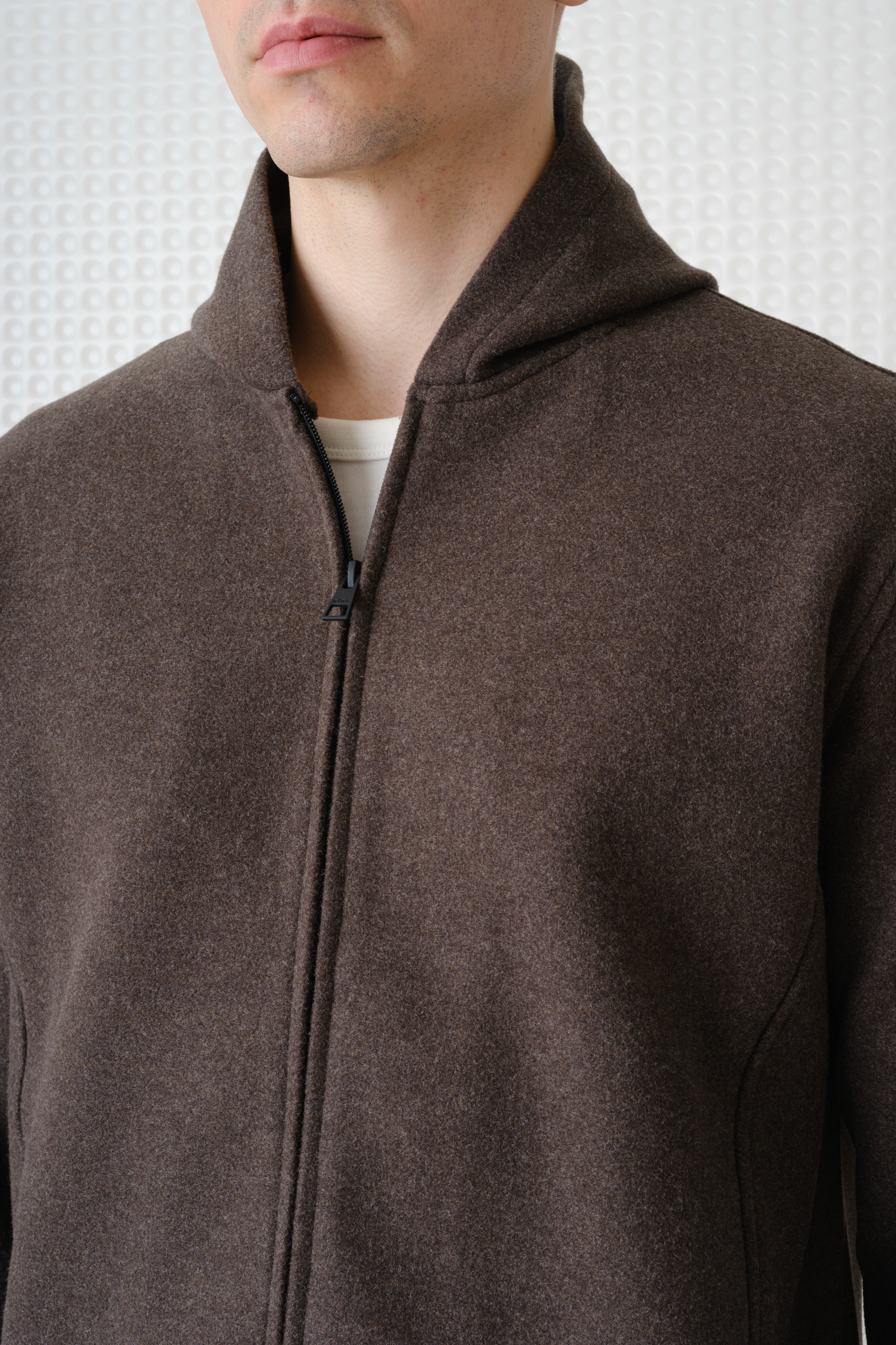 Soft, wool feel fabric gives this zip hoodie a unique luxury feel. 77% Polyester, 12% Viscose, 11% Acrylic