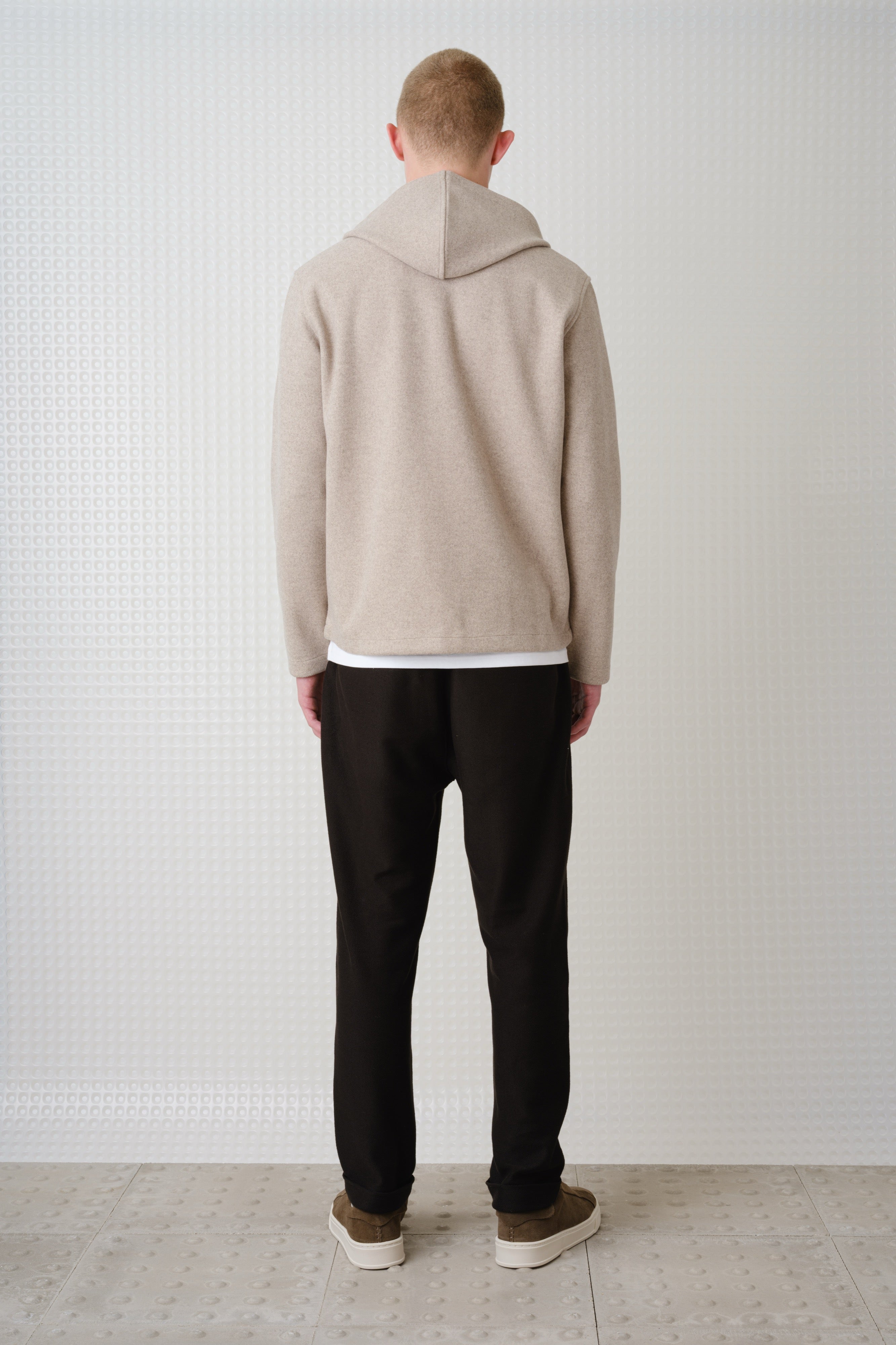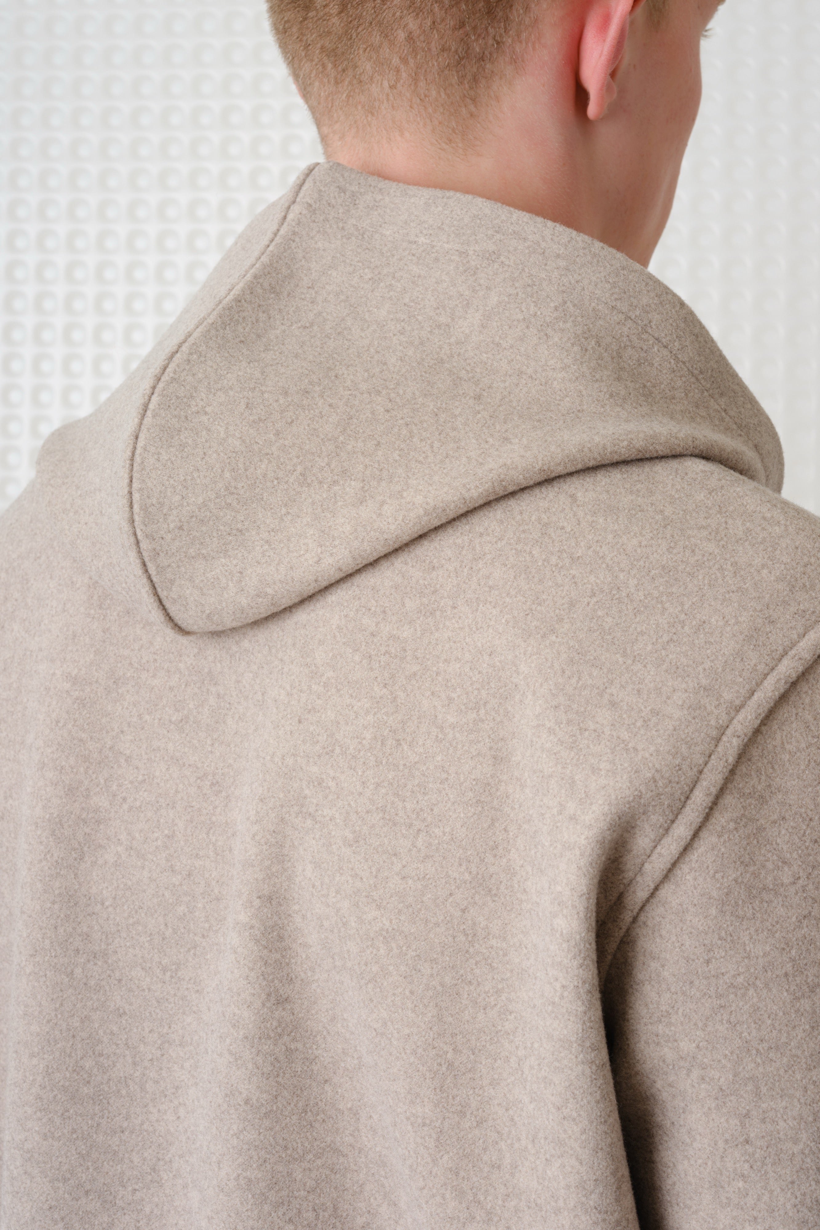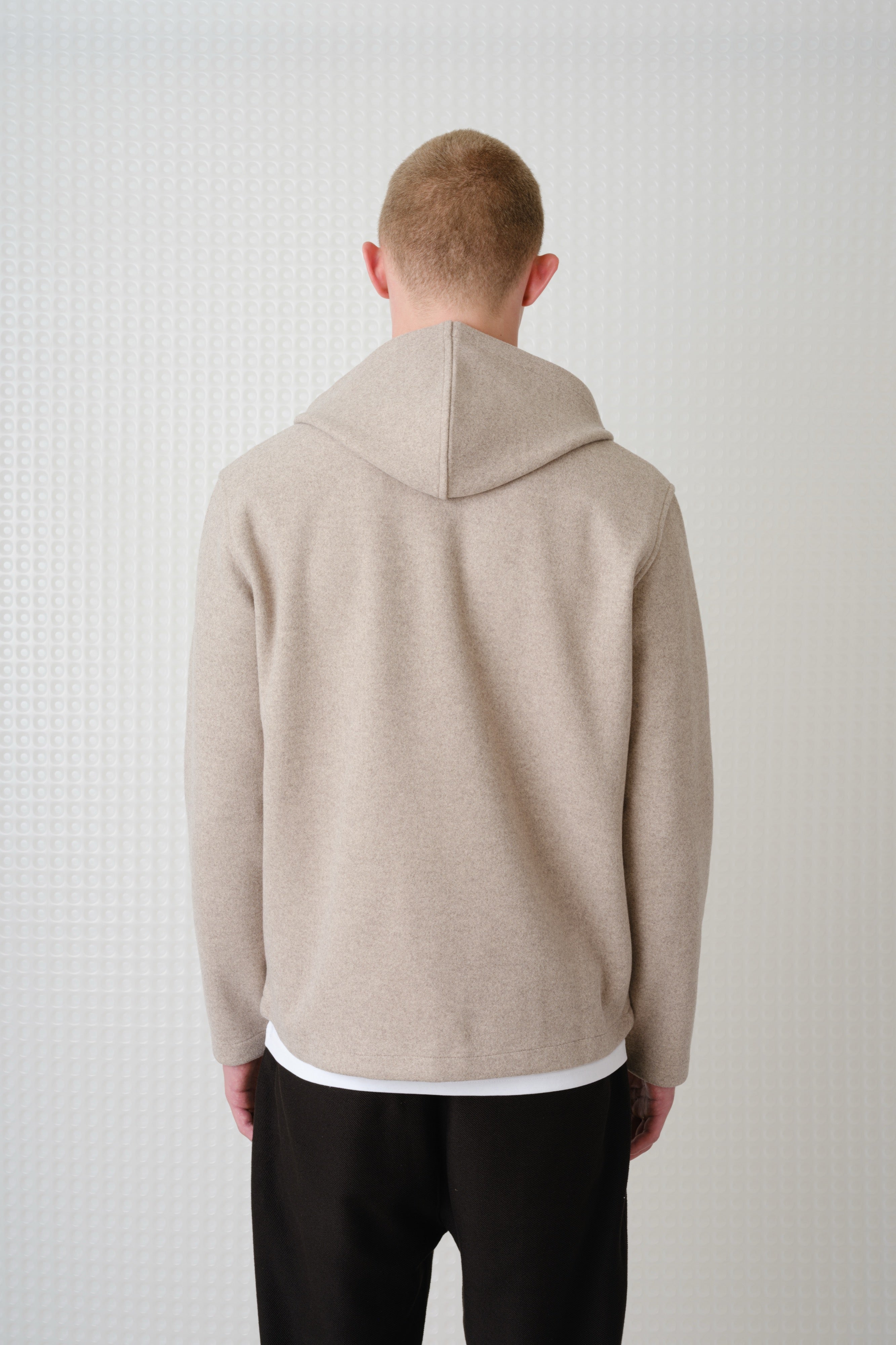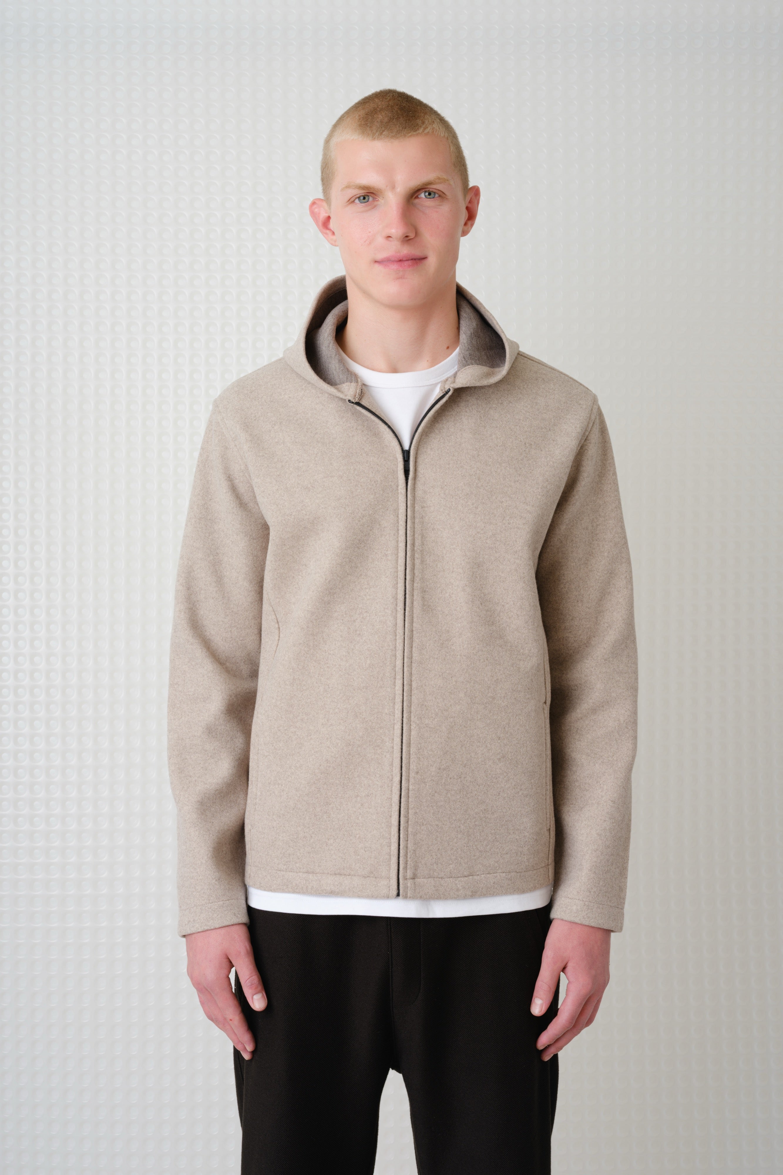 Soft, wool feel fabric gives this zip hoodie a unique luxury feel.  77% Polyester, 12% Viscose, 11% Acrylic