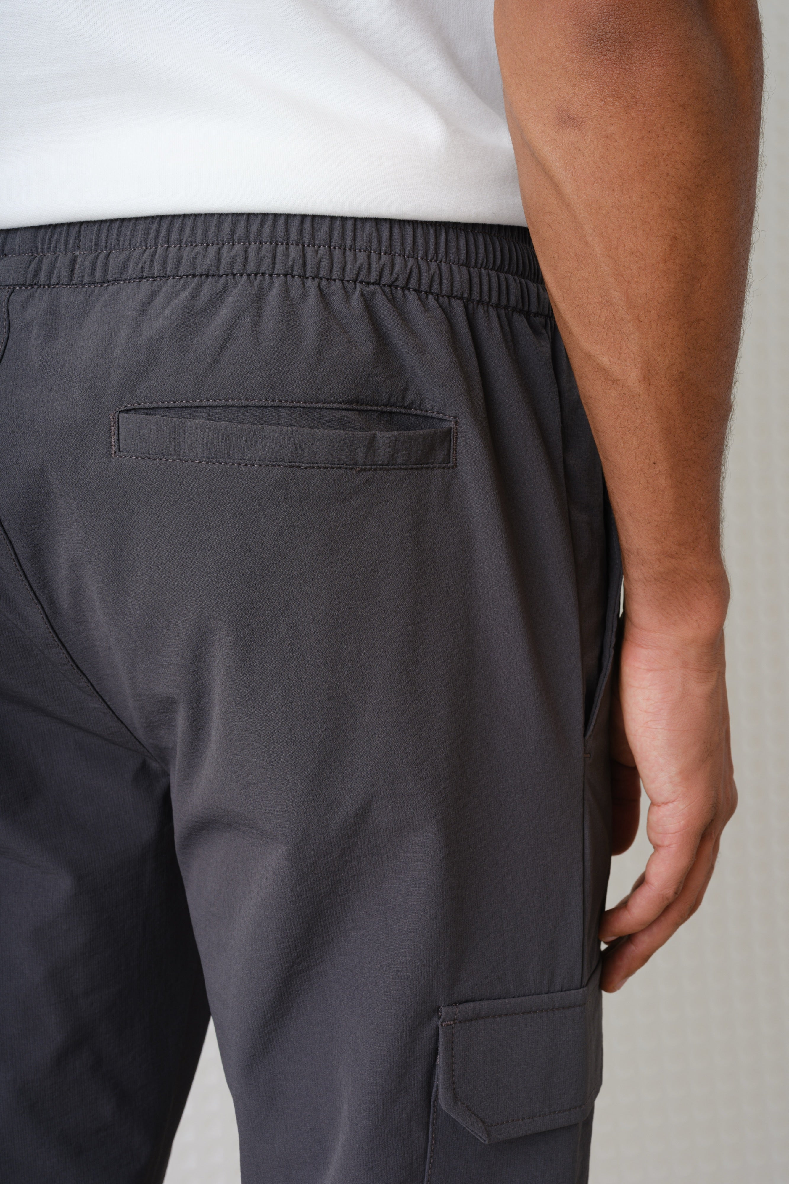 Tech feel slim fit stretch jogger. 92% Nylon, 8% Elastane