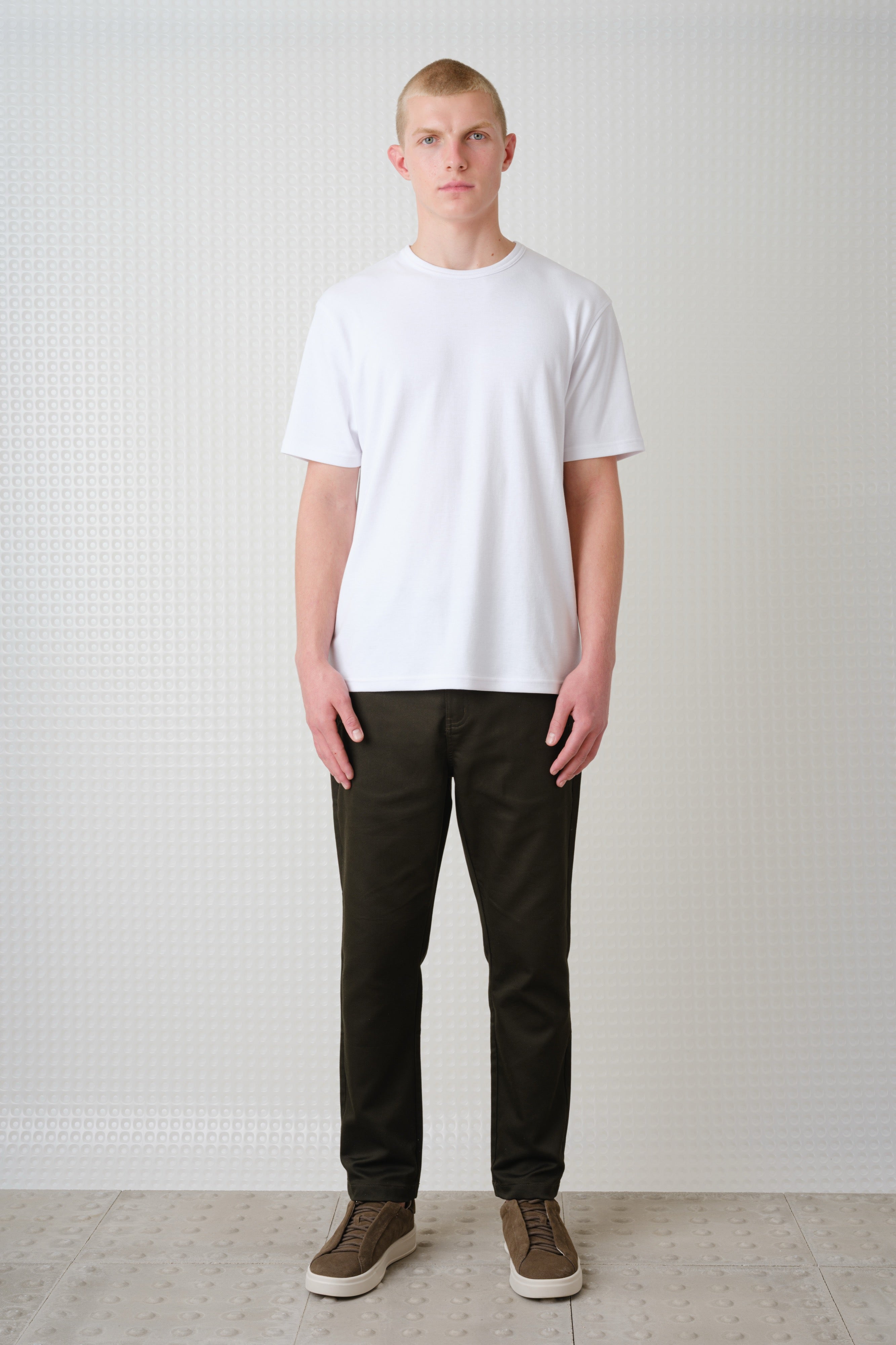 Drawstring slim fit cotton blend jogger.  57% Polyester, 42% Cotton, 1% Elastane