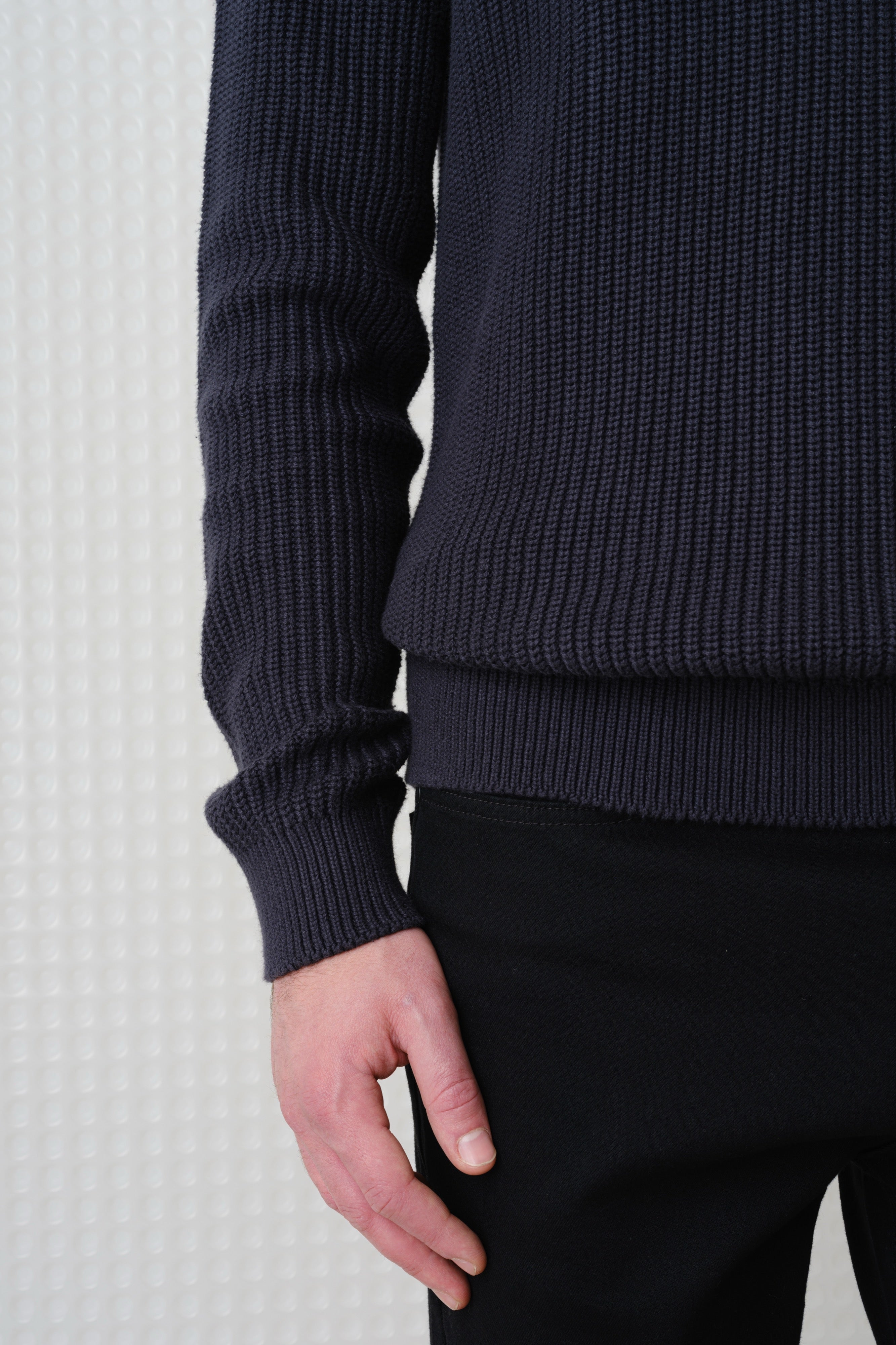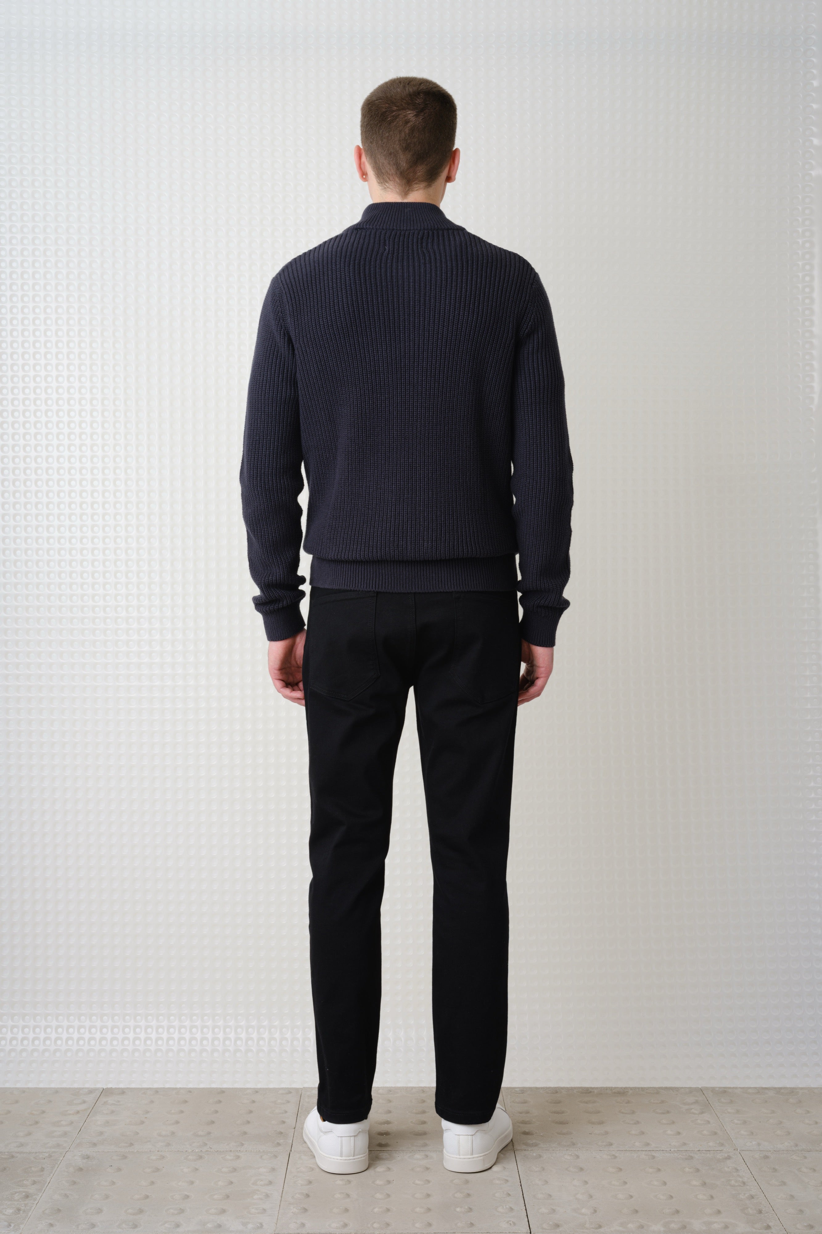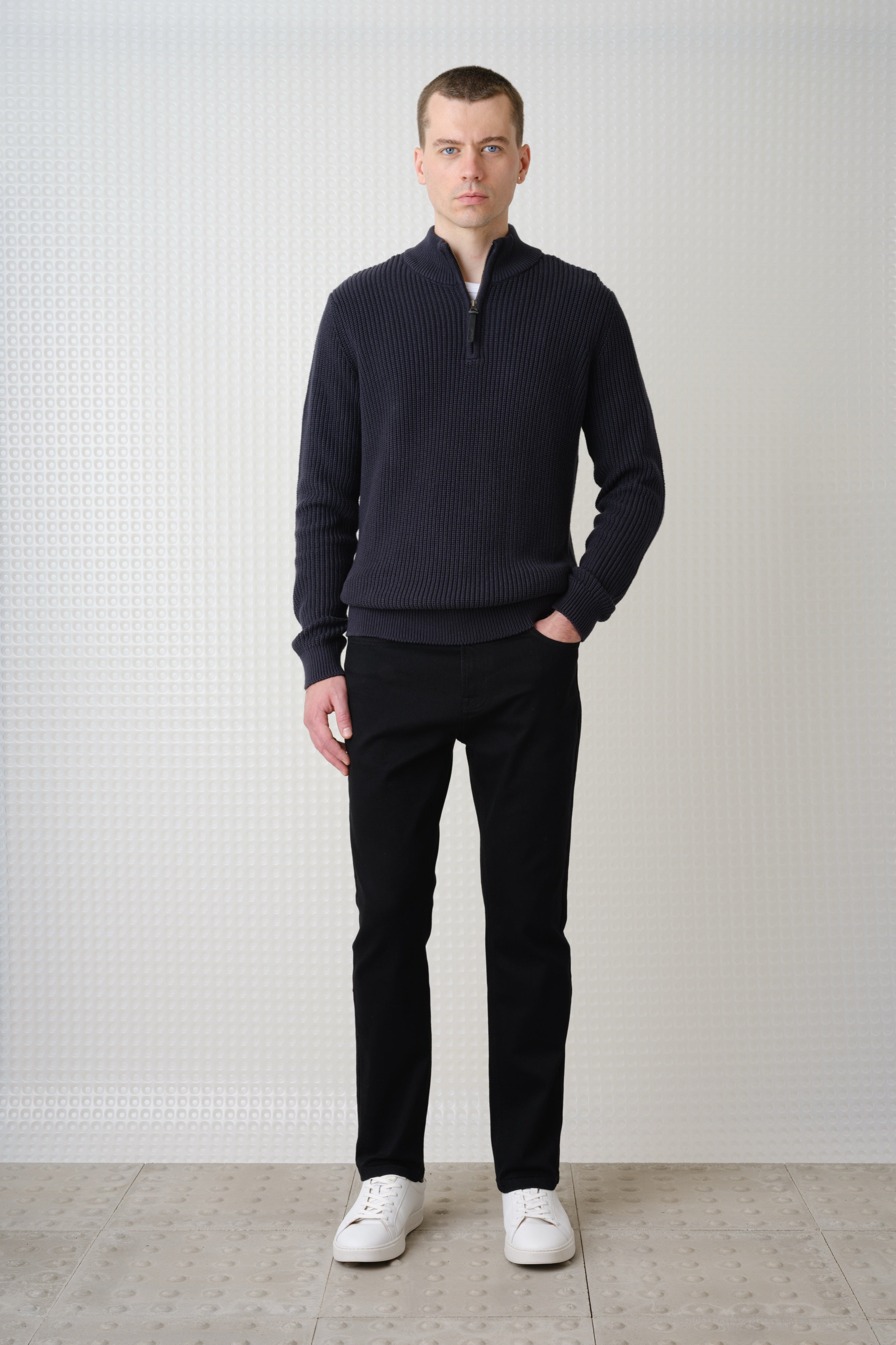 The Herning Quarter Zip Knit is knitted from textured cotton with a relaxed quarter-zip neckline. A calm, versatile layer.