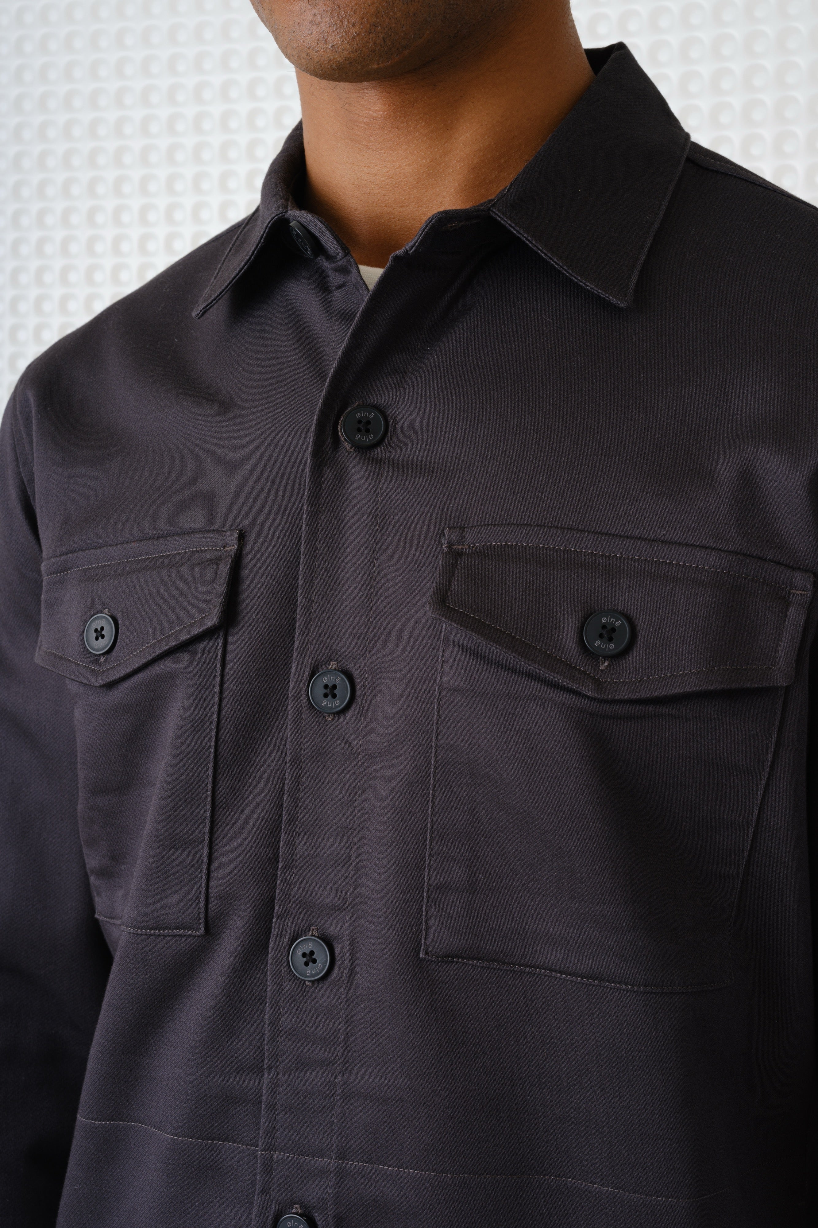 Warm feel overshirt/jacket with 2 chest pockets. 57% Polyester, 42% Cotton, 1% Elastane