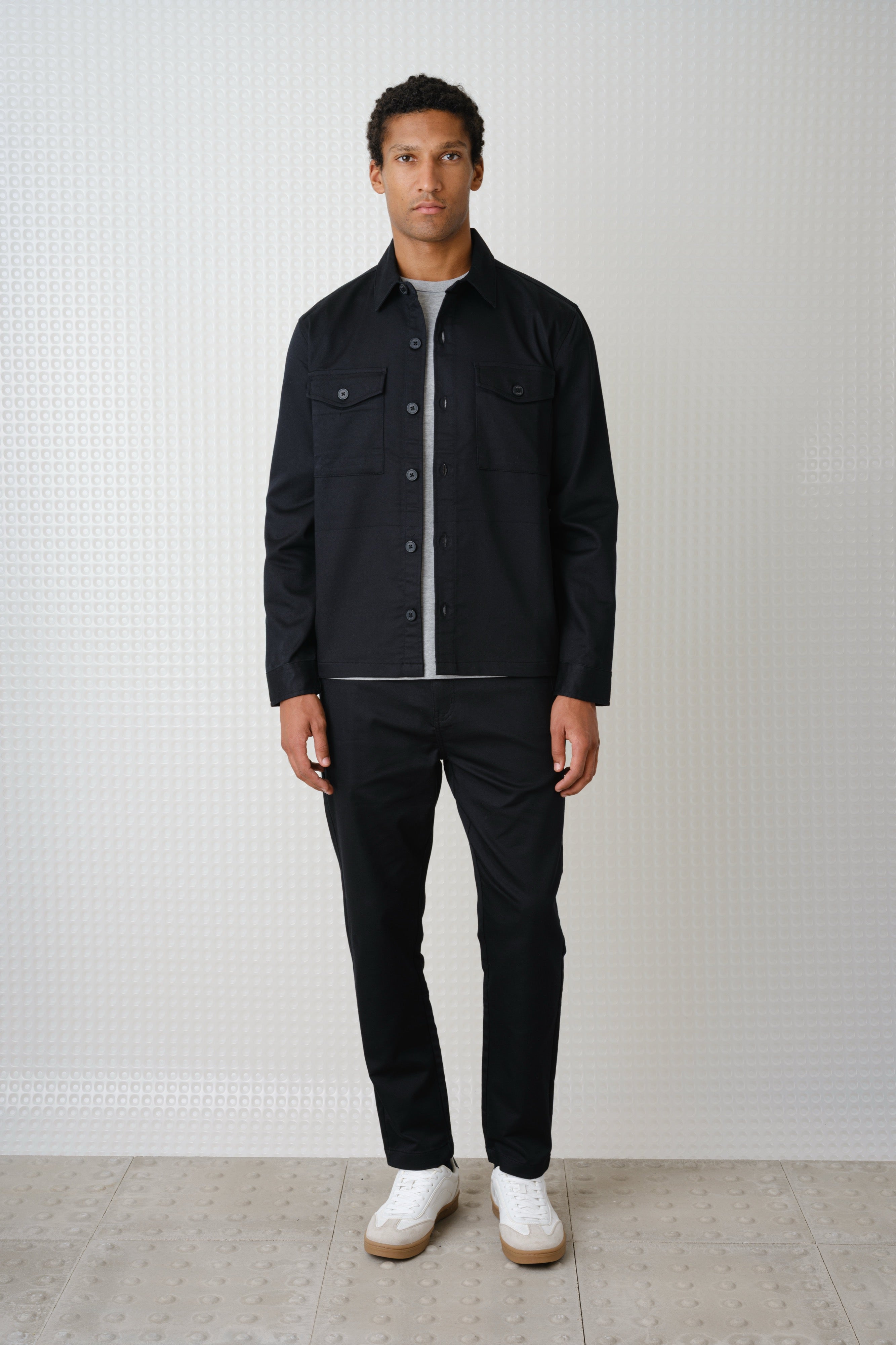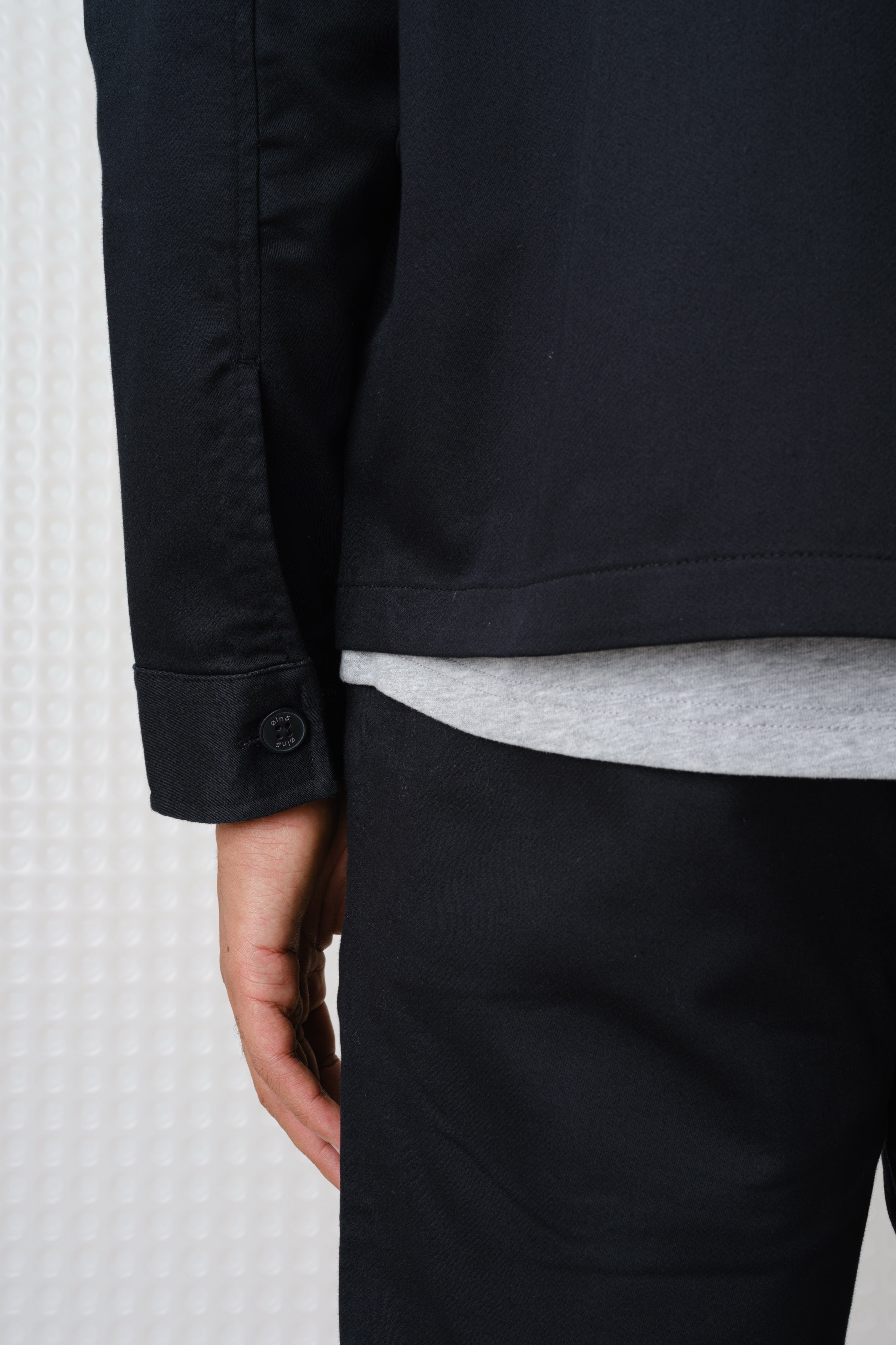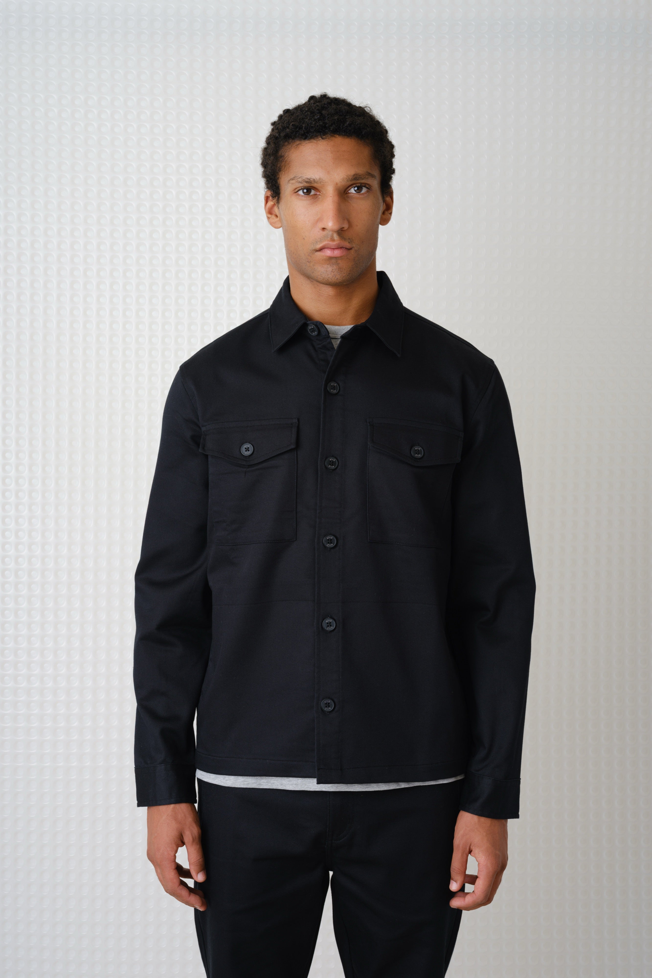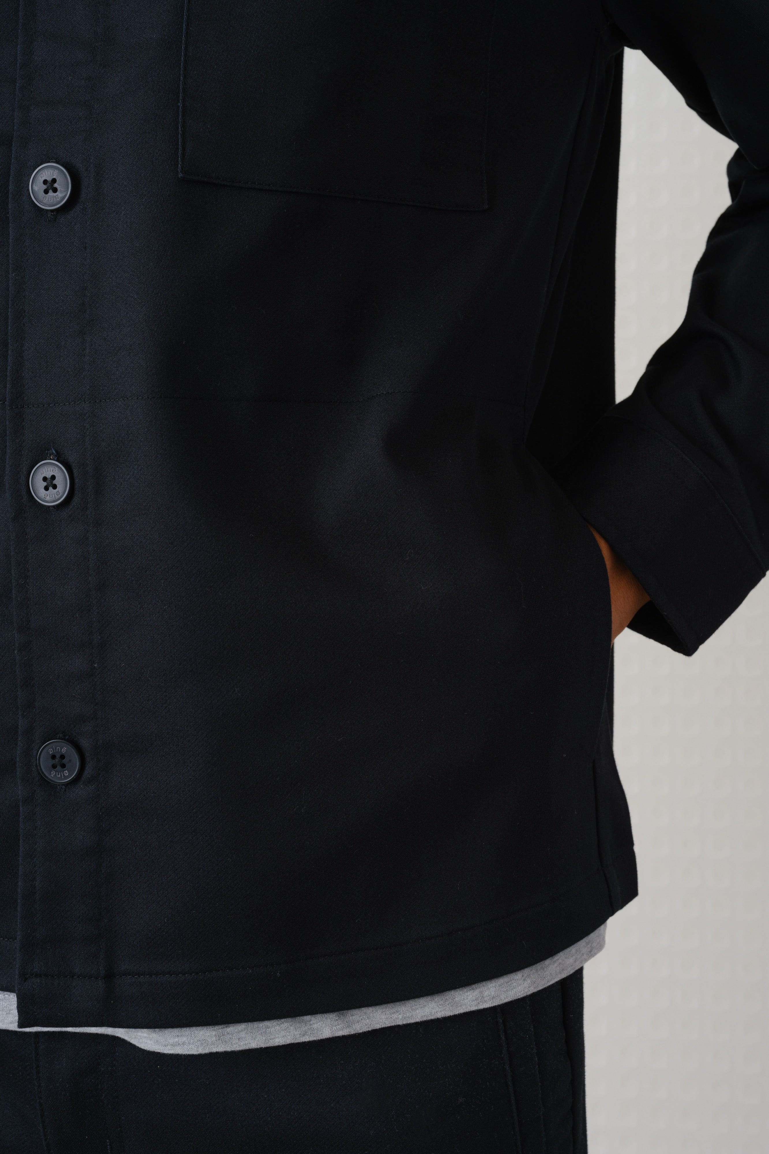 Warm feel overshirt/jacket with 2 chest pockets.  57% Polyester, 42% Cotton, 1% Elastane