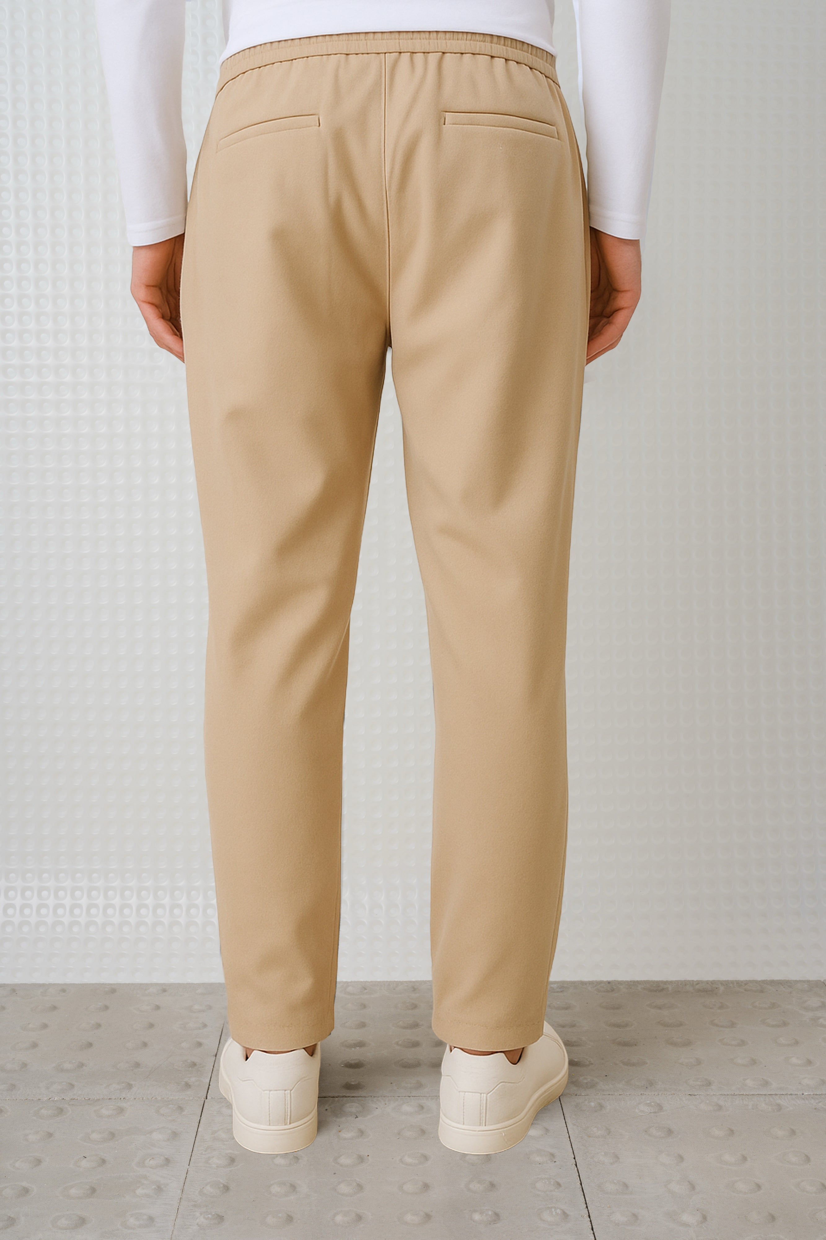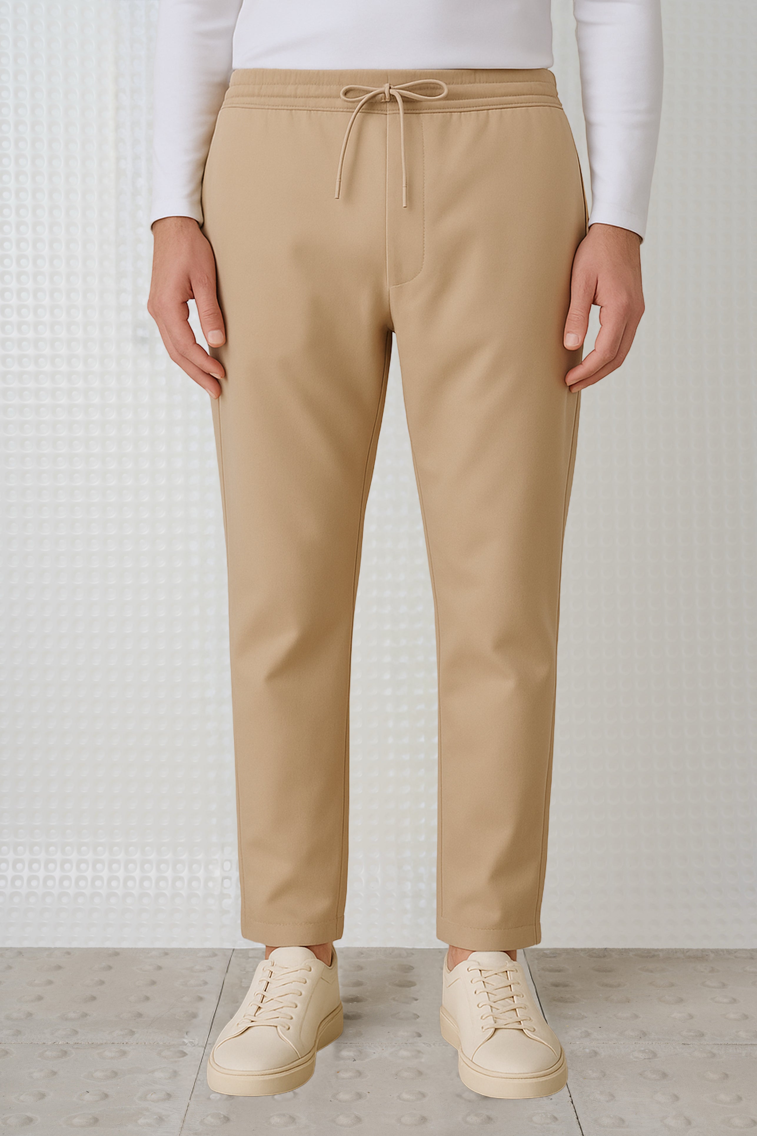 Tech feel slim fit drawstring trouser. 89% Polyester, 10% Viscose, 1% Elastane.