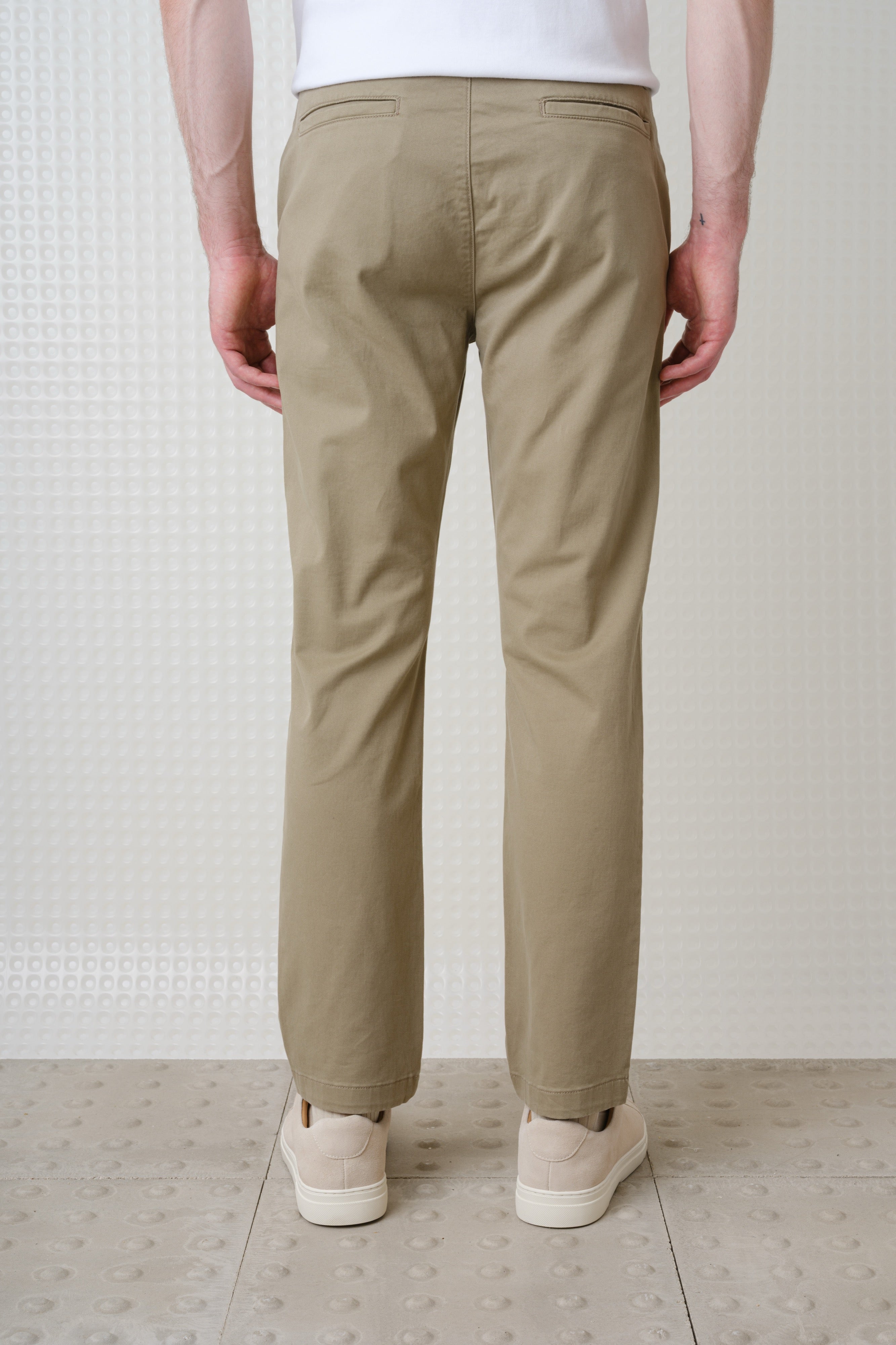 Slim fit chino trouser with a fixed waistband in a mid weight cotton with 3% elastane to give a bit of stretch for comfort.