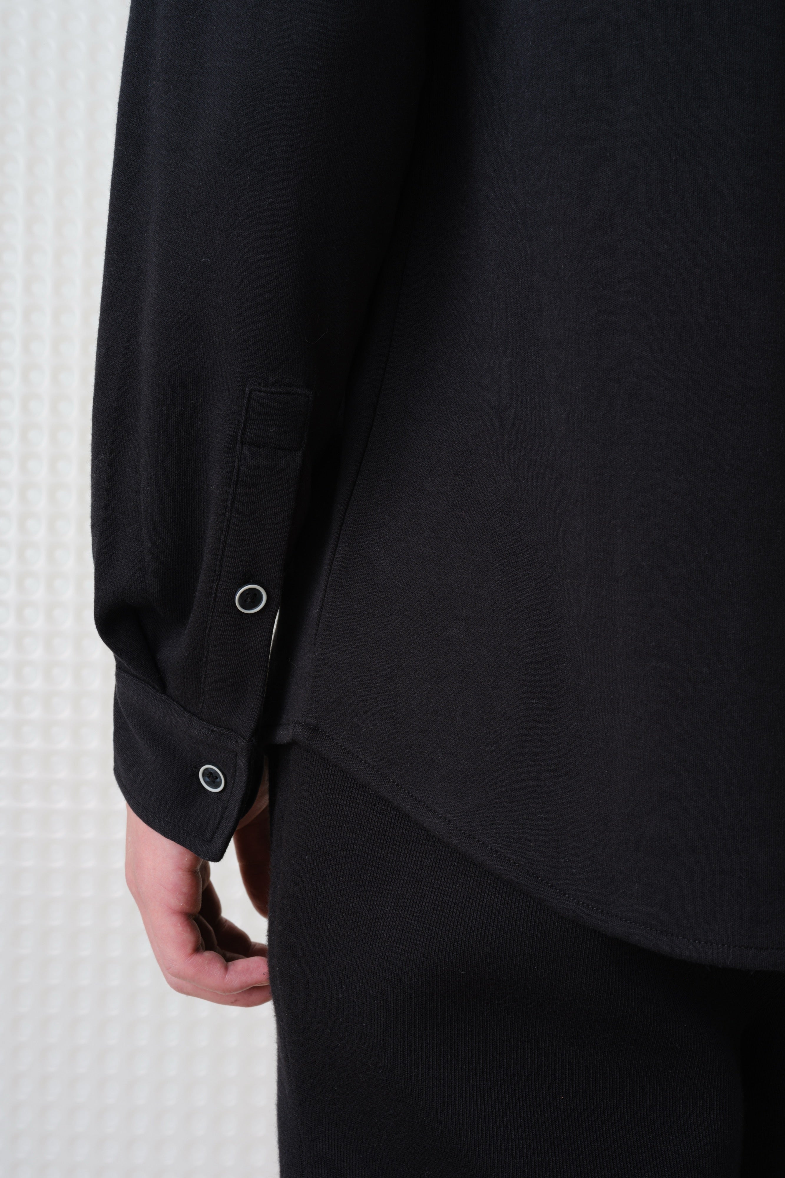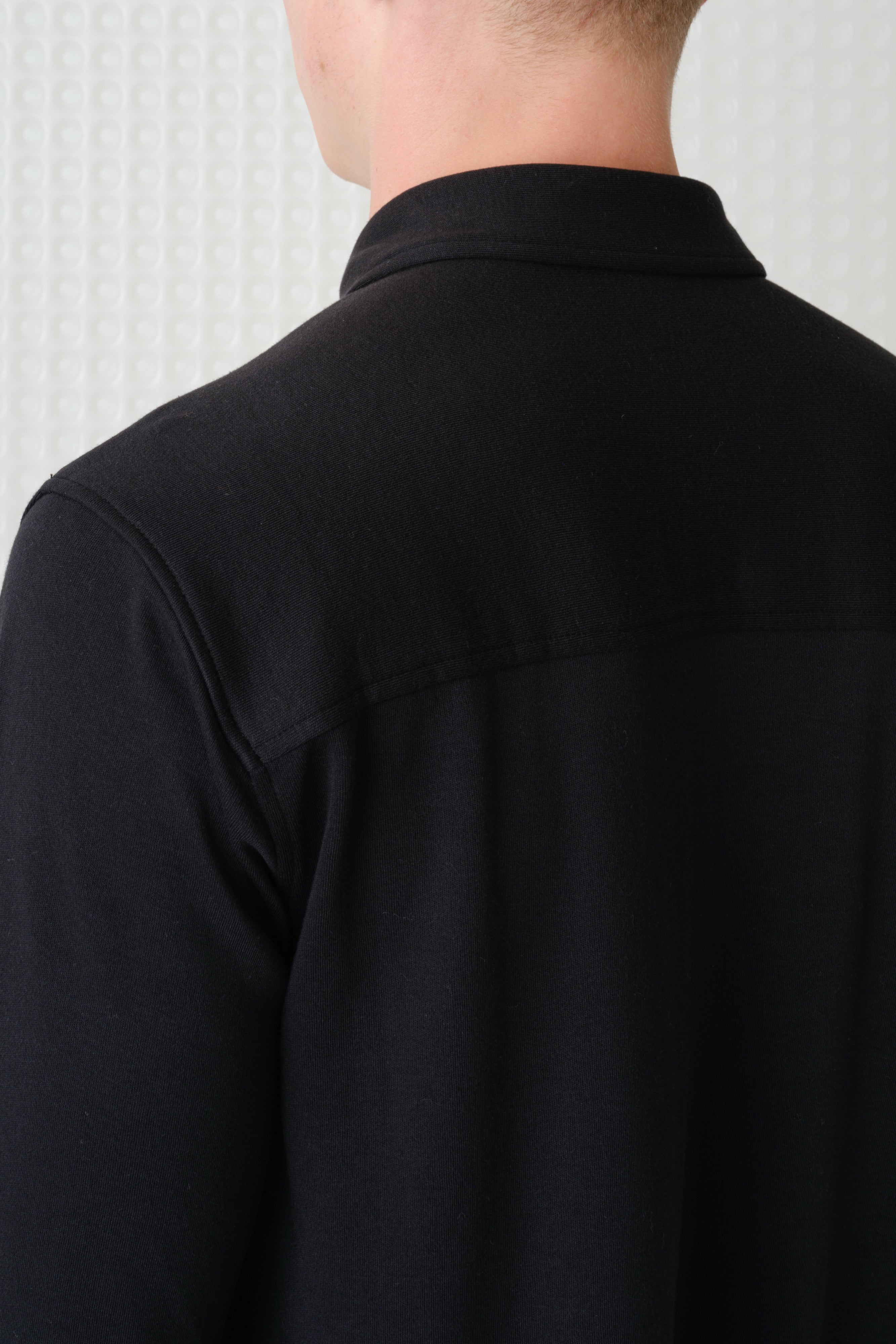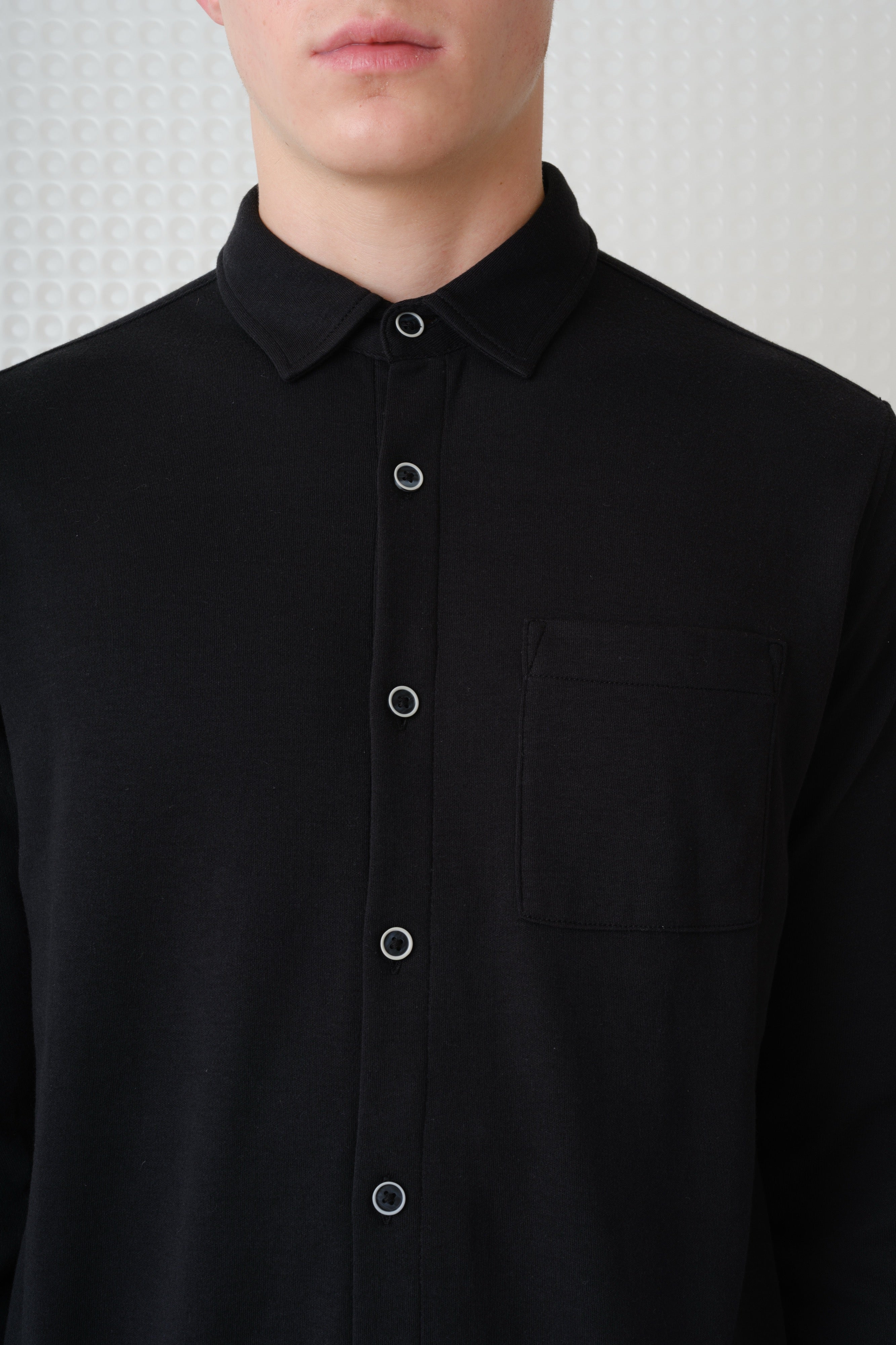 Heavyweight cotton blend shirt with contrast buttons.  60% Cotton, 40% Polyester.