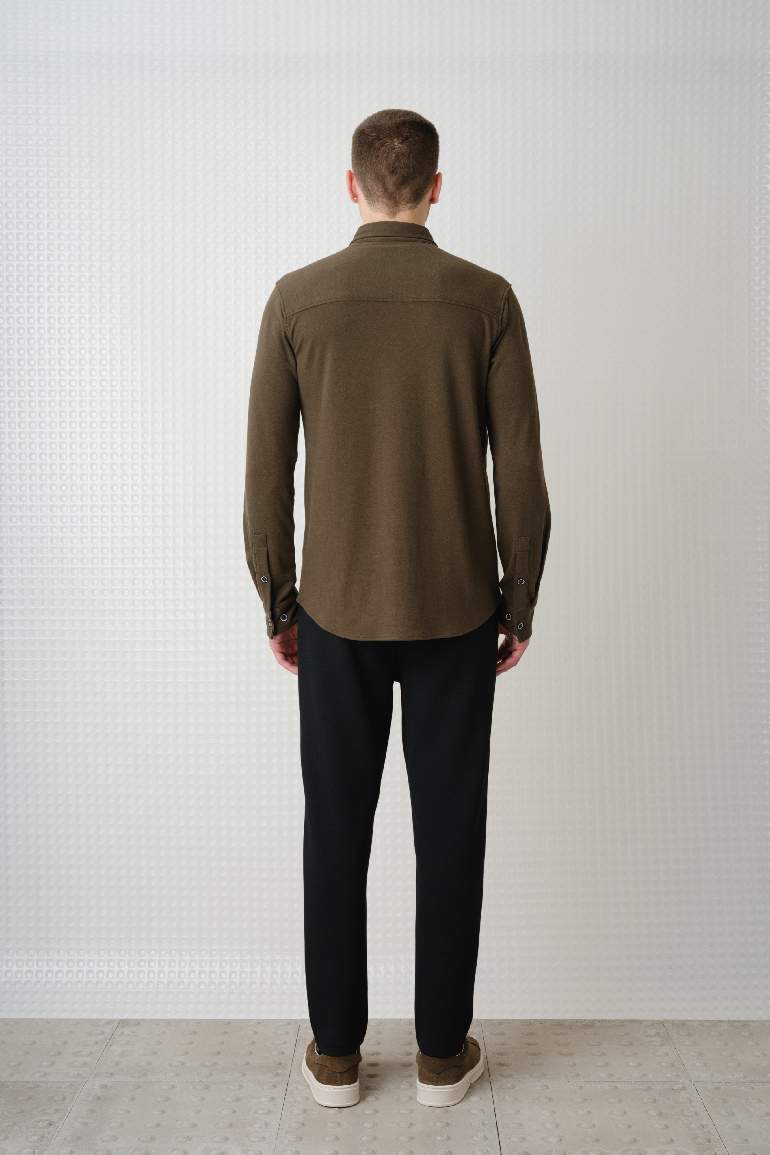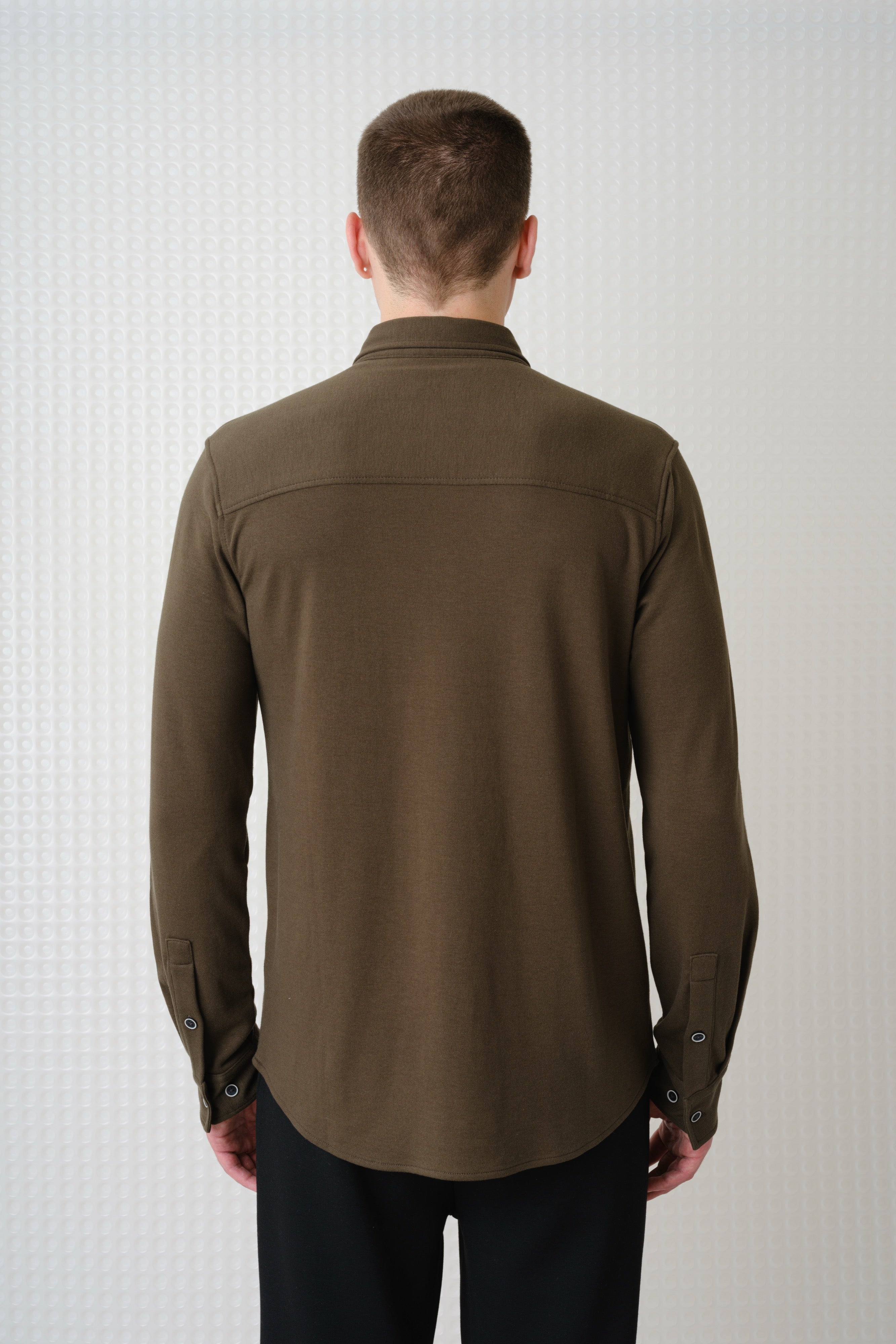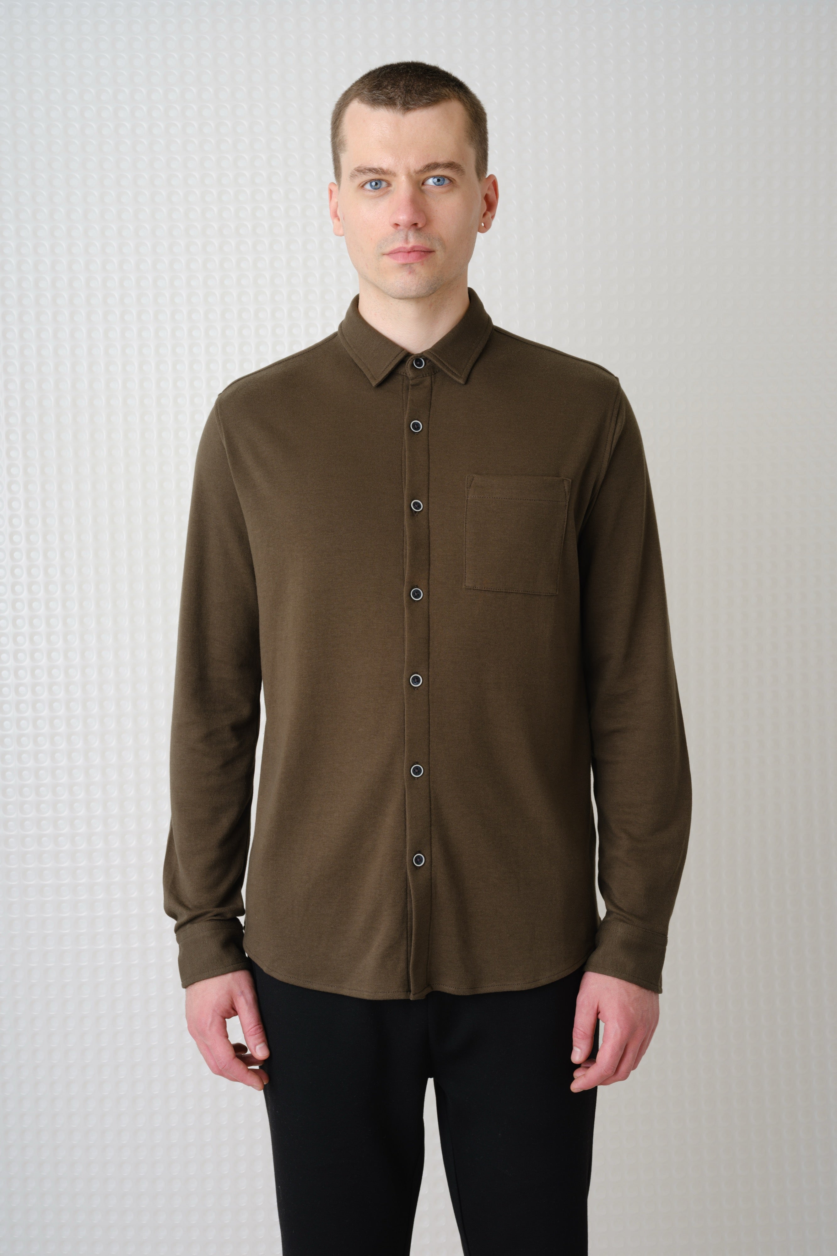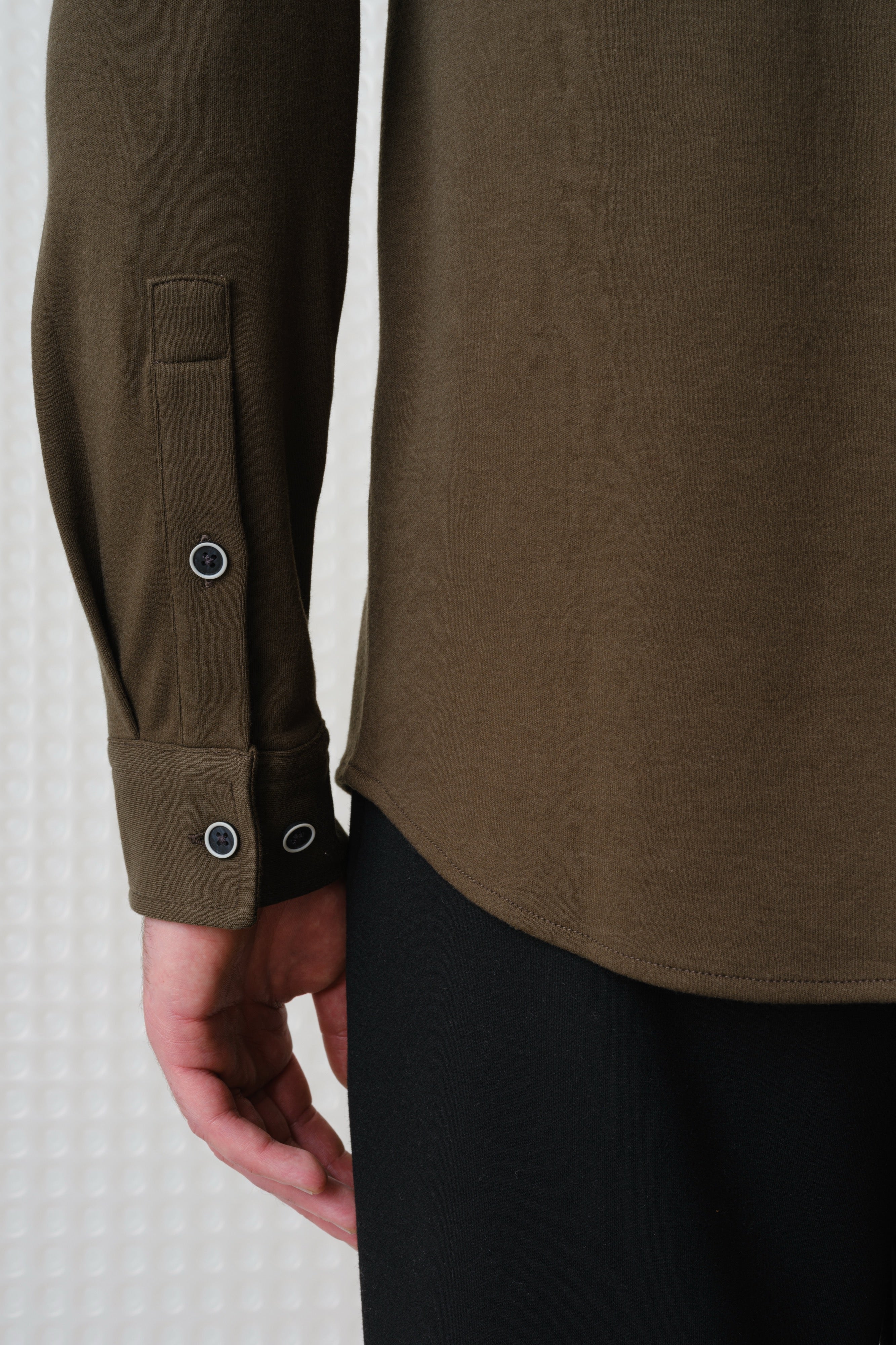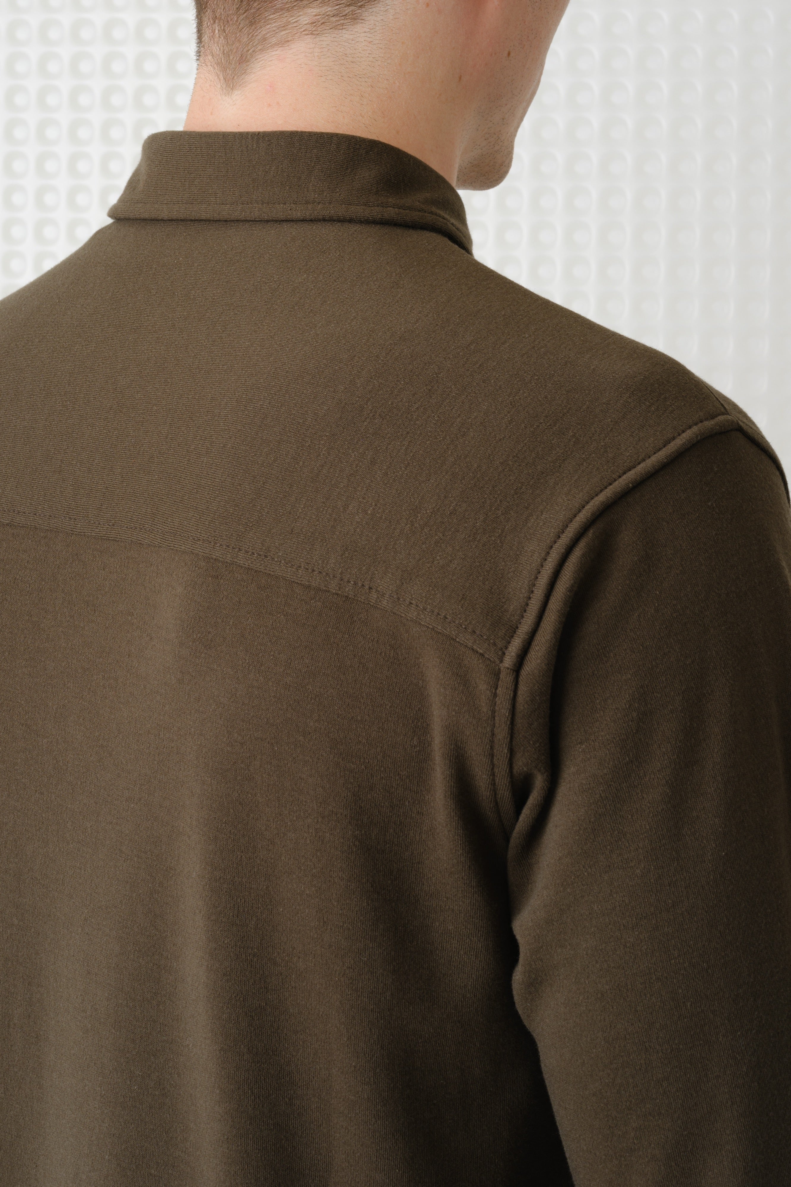 Heavyweight cotton blend shirt with contrast buttons.  60% Cotton, 40% Polyester.