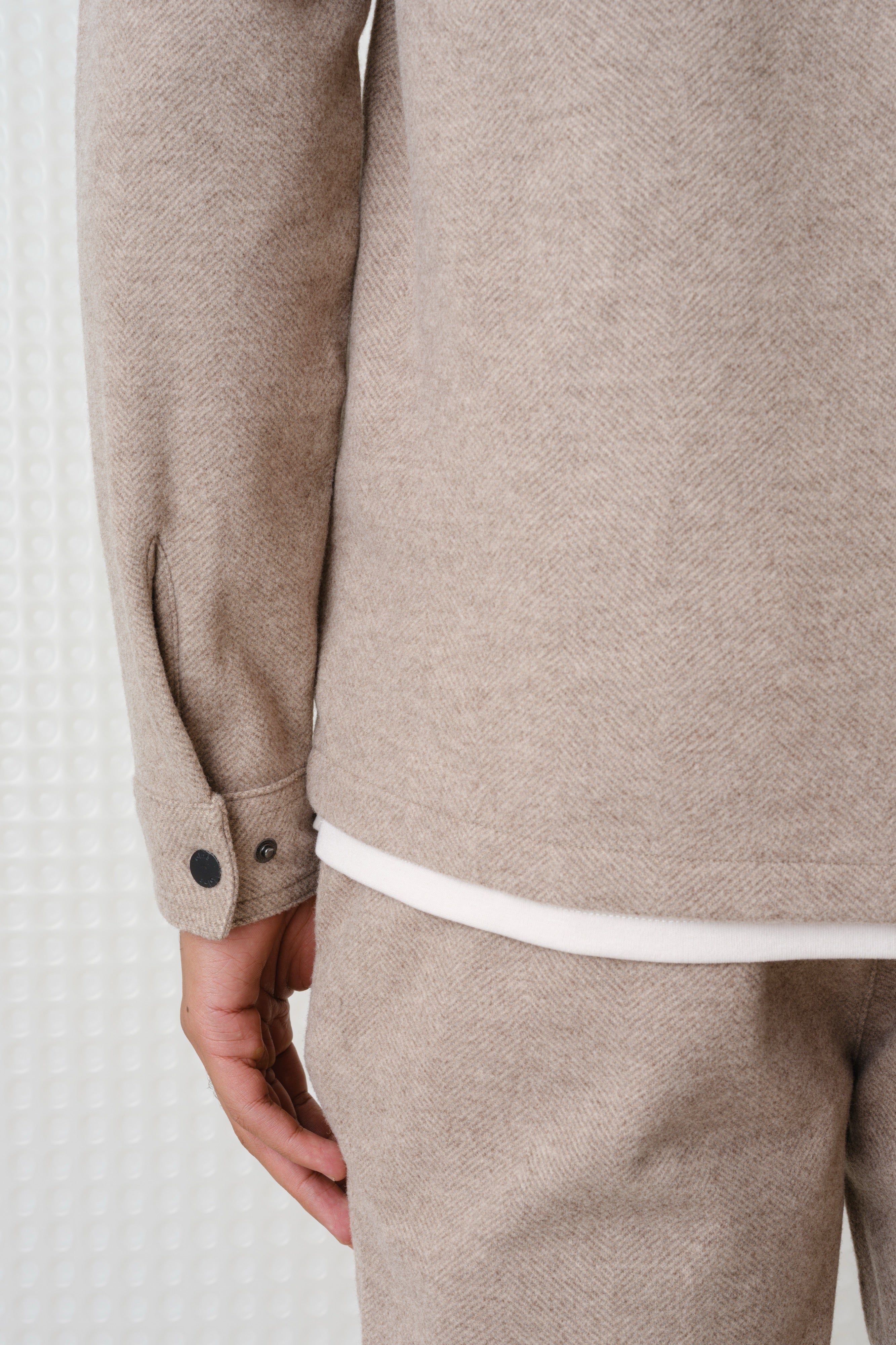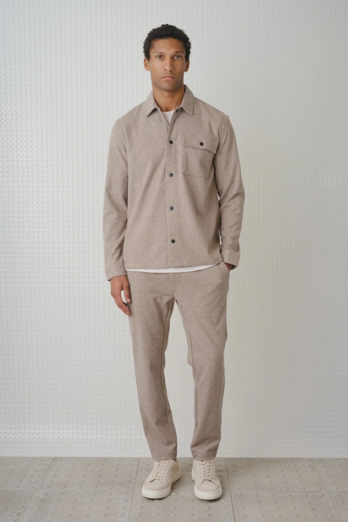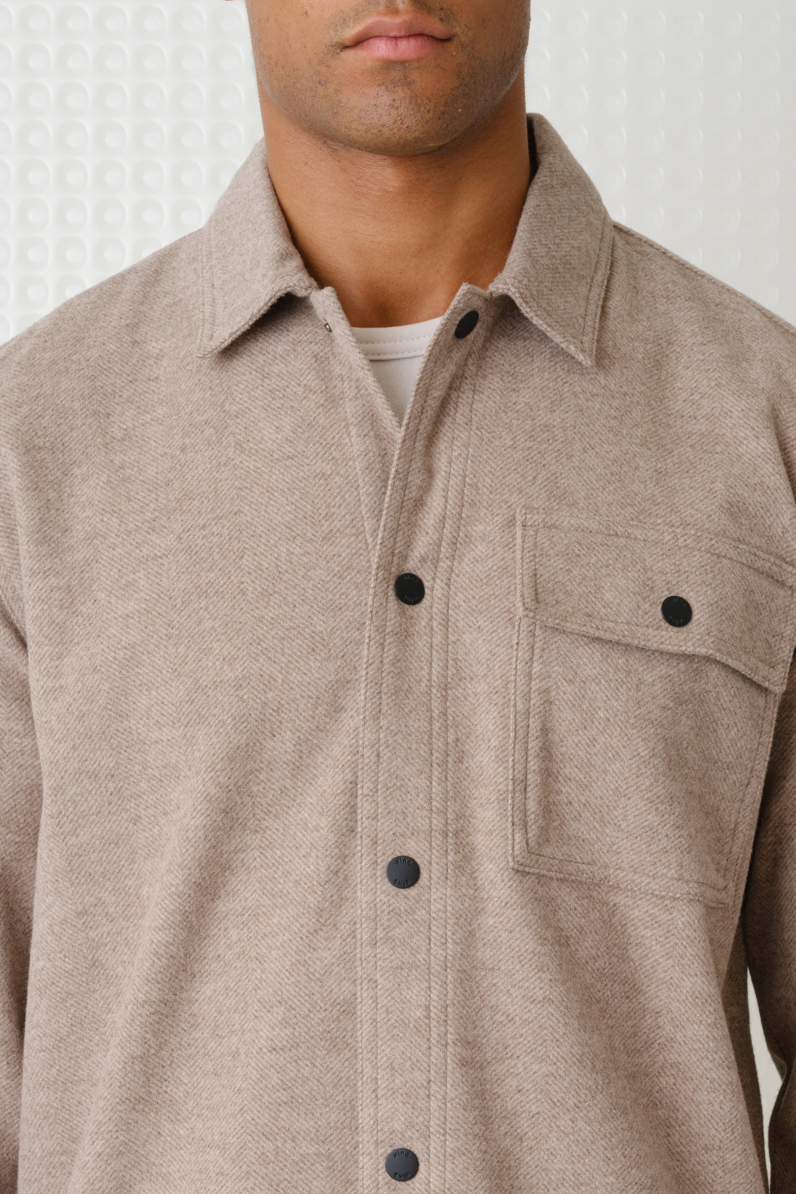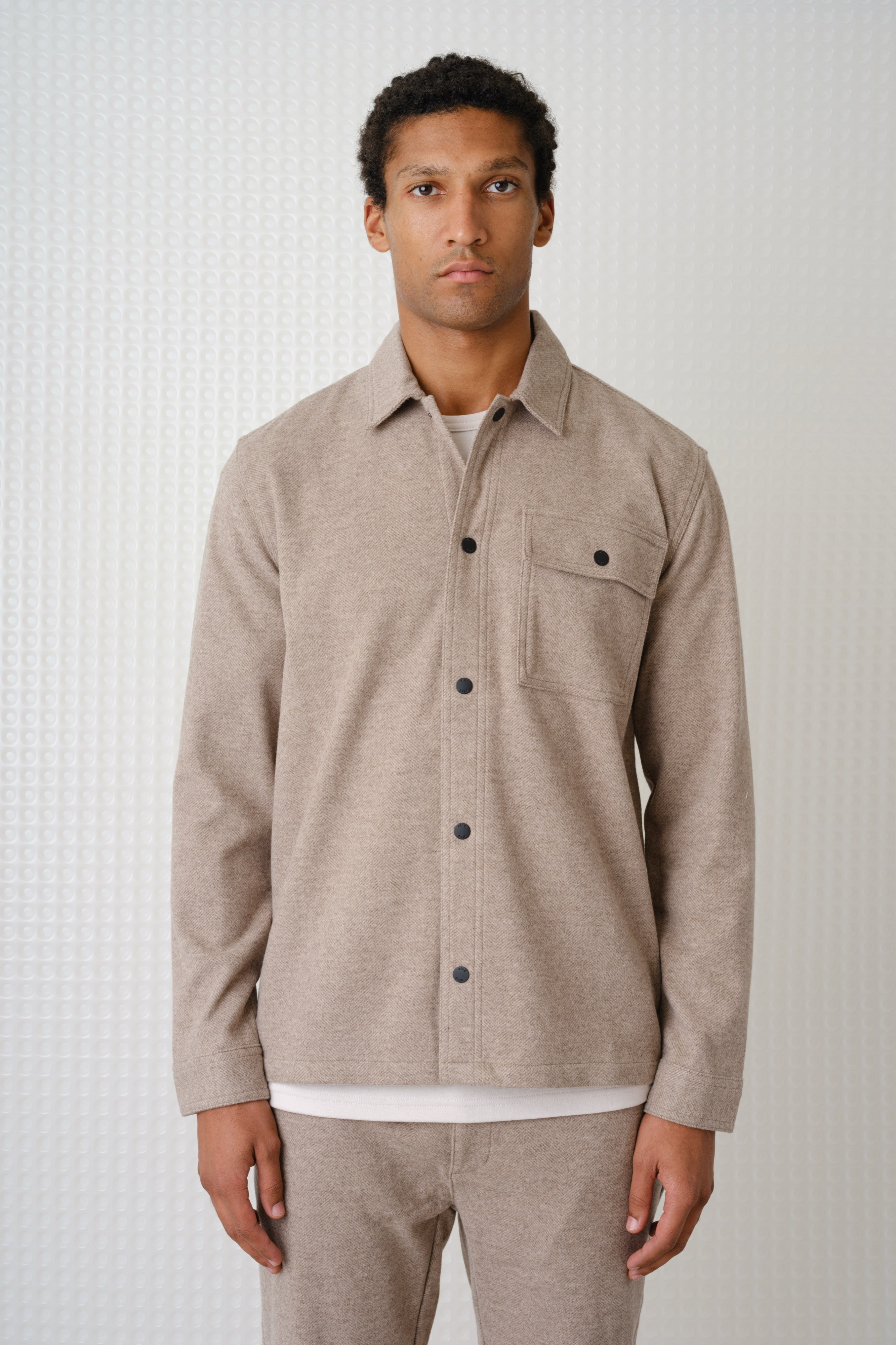 The Trail Herringbone Jersey Shirt in Mushroom by Olne combines refined style with exceptional comfort. Crafted from soft, breathable herringbone jersey fabric, it offers durability and a subtle textured pattern for a sophisticated look. Designed for versatility, this shirt adapts effortlessly from casual outings to layered autumn wear, providing reliable warmth without sacrificing mobility. Its tailored fit ensures a modern silhouette, making it an essential piece for those who appreciate expert craftsmanship and understated elegance.